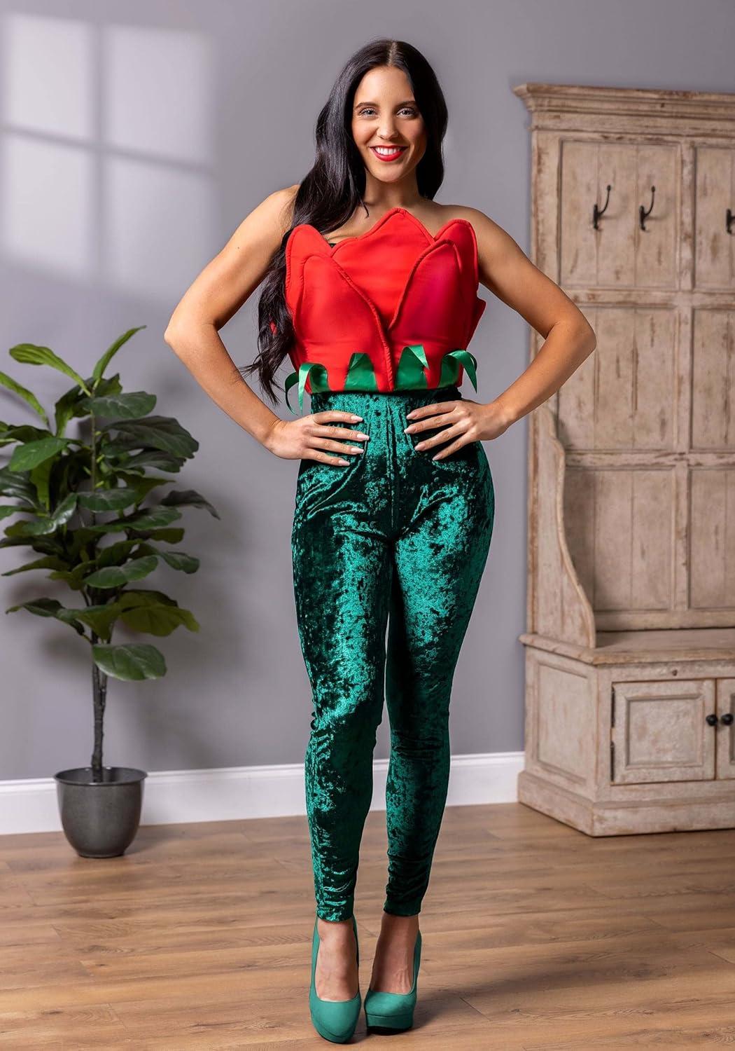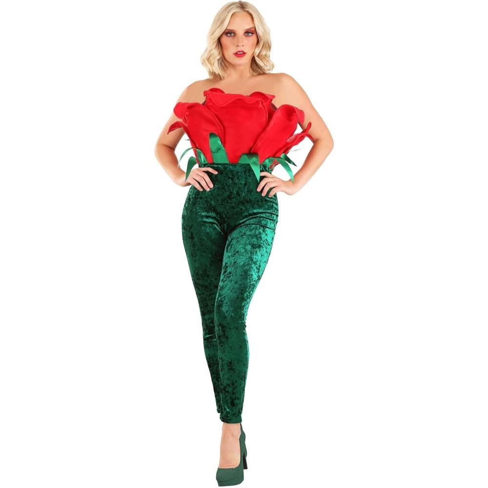 Red Rose Flower Costume for Women – Floral Outfit for Adults, Garden Boquete Flowers Costume for Halloween Parties
