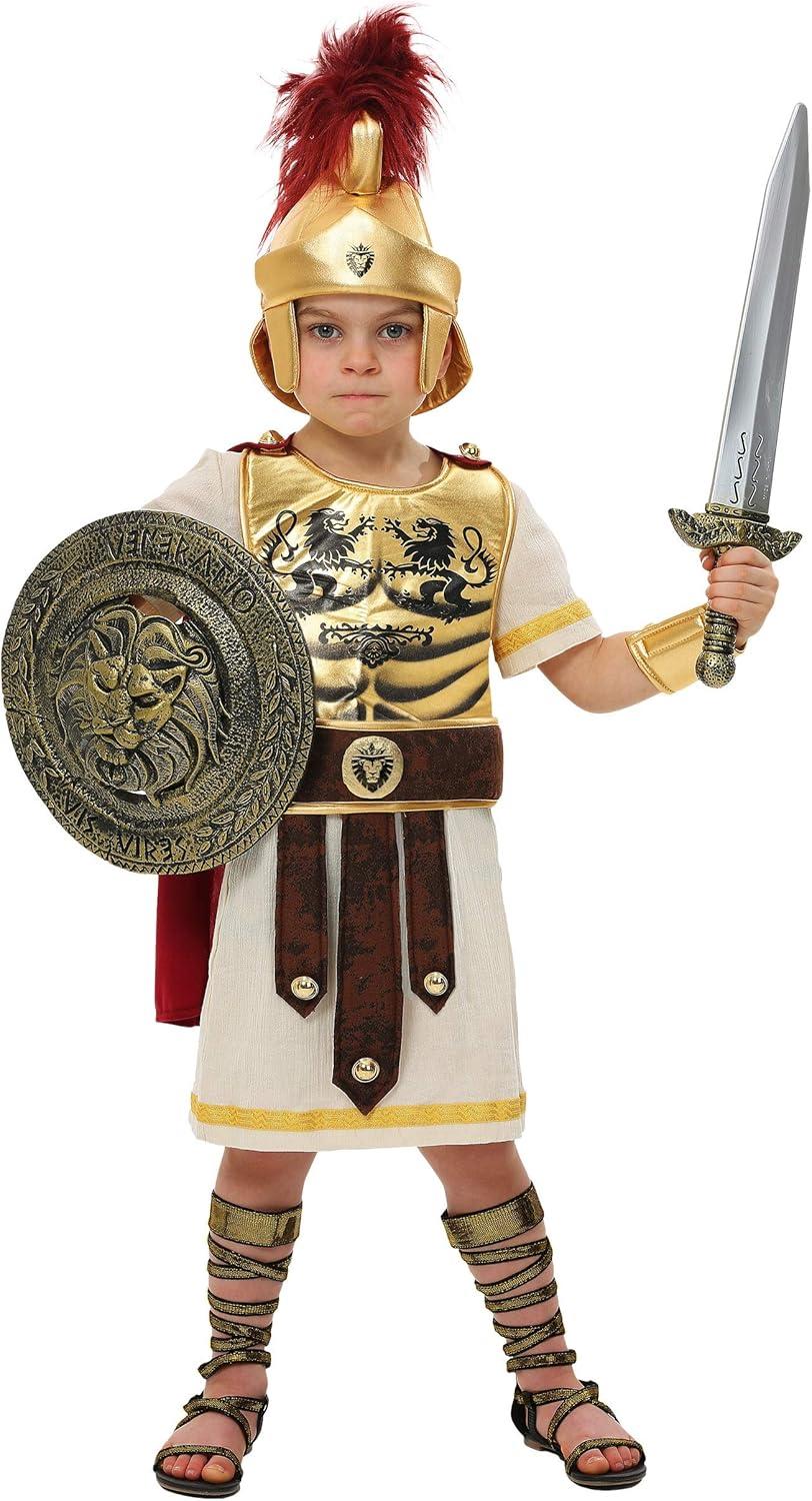 So your toddler wants to be an elite Roman Gladiator for Halloween. We can you help you with that! We're experts on all things costume, which is why we tasked our costume designers with producing a super-detailed costume to recreate the look of ancient apparel worn in the Roman Coliseum. This boy's Gladiator Costume is the result, and it's got an emphasis on quality and design that will bring his imaginative Halloween plans to life! Product Design: We designed this Roman Gladiator Costume as a tunic along with a chest piece and helmet, and it also comes with belt and arm guard accessories to complete the ensemble. With soft foam armor pieces that feature embellished designs and accent touches like a faux suede belt, red tunic, and a helmet with a faux fur crest, we're sure he'll feel like he could battle on the floor of the Coliseum!