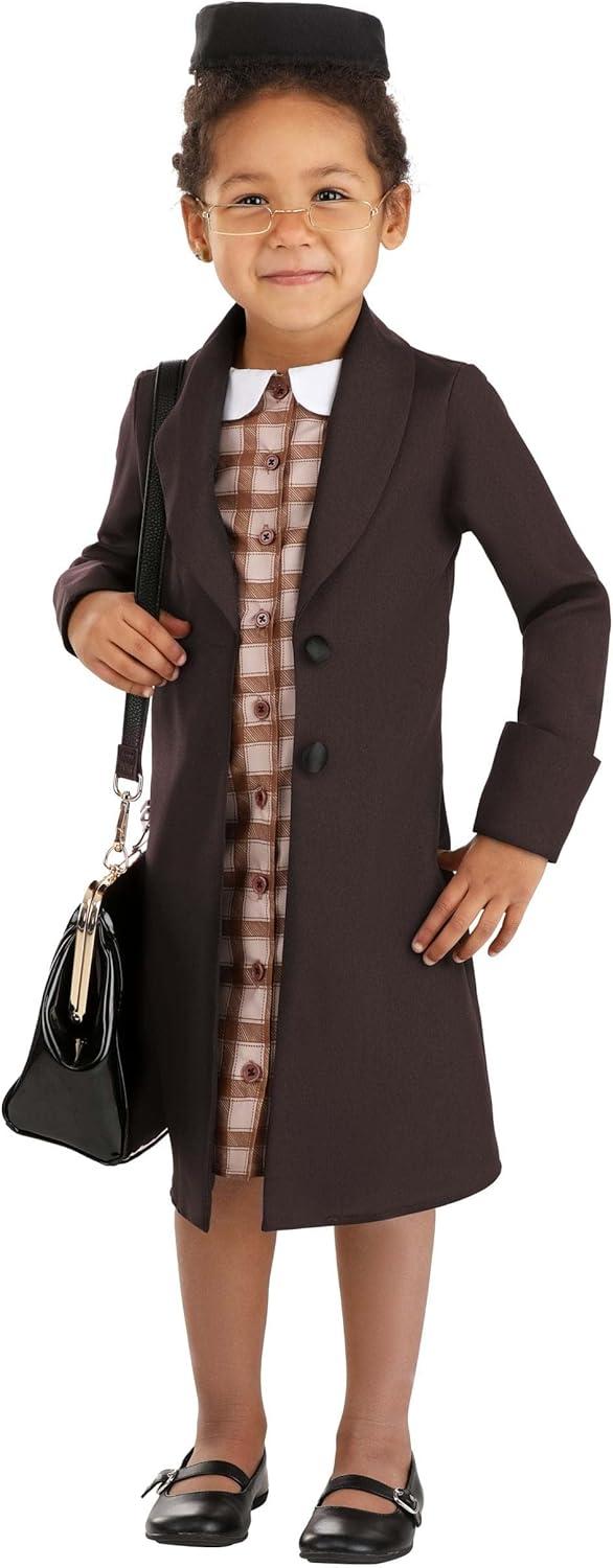 Fun Costumes Rosa Parks Costume for Toddler Girls: This detailed Rosa Parks Costume is a great choice for school plays and historical re-enactments about the Civil Rights era of American history. The costume is inspired by an outfit the real Rosa Parks wore in a photograph. Designed as a one-piece costume it's styled to look like a brown overcoat over a plaid dress and comes with a brown pillbox hat to complete the character theme. This costume will make a lasting impression when your child wears it as an homage to this renowned figure in US history. Crafted with the utmost attention to detail, this button-front coat and dress combo will look just like the classic outfit worn by Civil Rights activist Rosa Parks. For an accurate look, this costume also includes a pillbox hat inspired by Parks' style. Product Details: 100% polyester poplin & broadcloth fabrics Brown poplin jacket has attached plaid broadcloth dress panels Button down center front of the plaid dress and 2 fabric-covered buttons on the jacket Foam-backed pillbox hat has elastic loops at sides to slide over a headband or to be pinned Size Chart: 2T: Chest=21 1/2″; Sleeve Length=13″; Waist=21″; Jacket Length=23 3/4″ 4T: Chest=23 1/2″; Sleeve Length=15″; Waist=23″; Jacket Length=24 1/2″ About Us: Fun Costumes are exclusively made by us and begin with passion, teamwork, and industry expertise decades in the making. Our products are proof that with the right people even a simple idea can grow into something incredible. We started in a small garage in Minnesota, providing costumes to our local community, and now we're creating costumes for people all around the world. – Jacket With Attached Dress Front – Hat