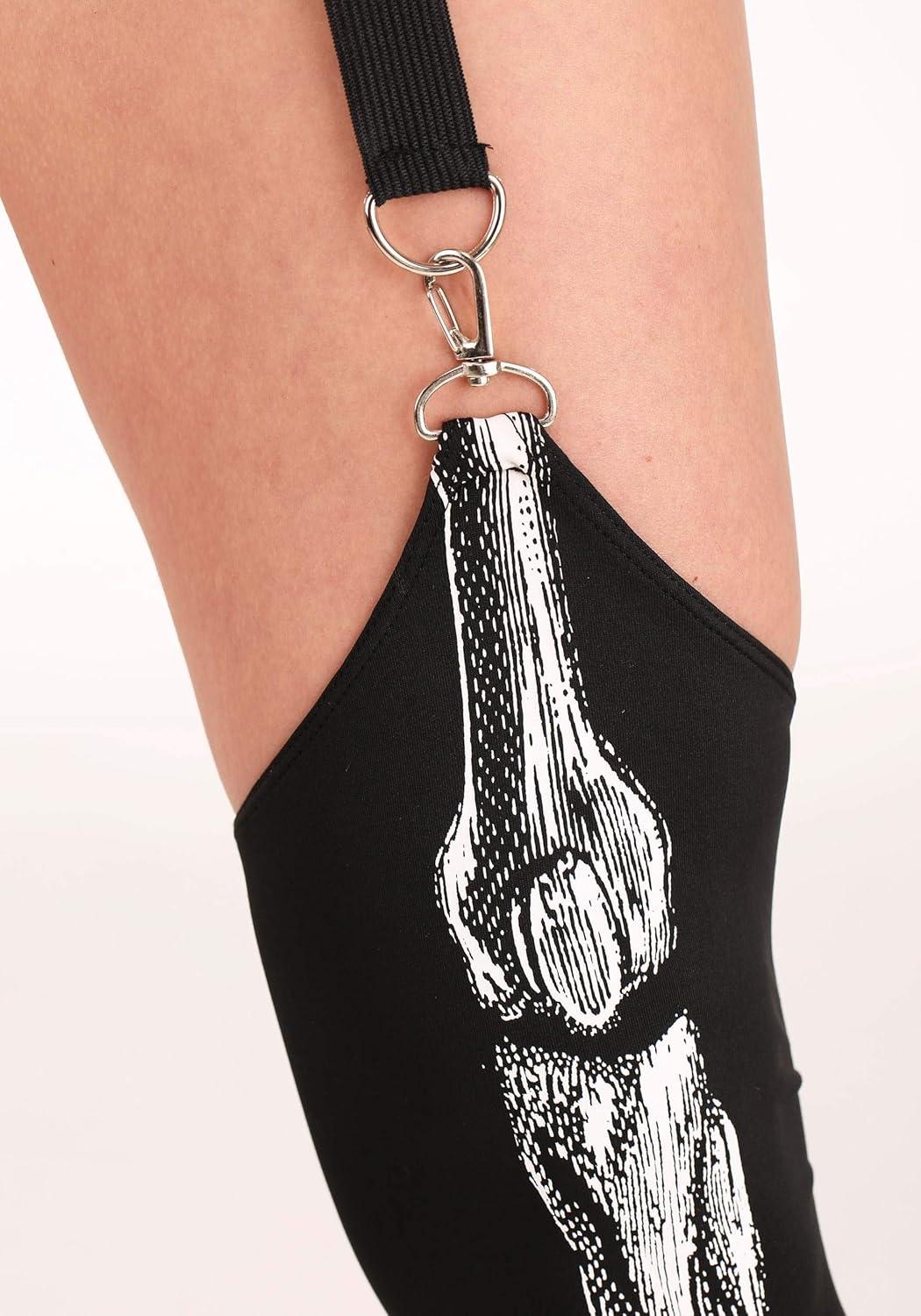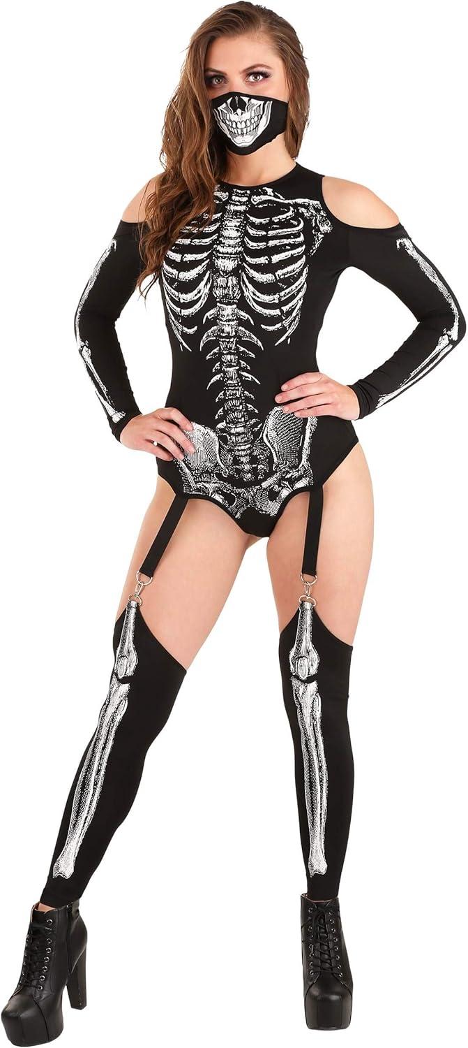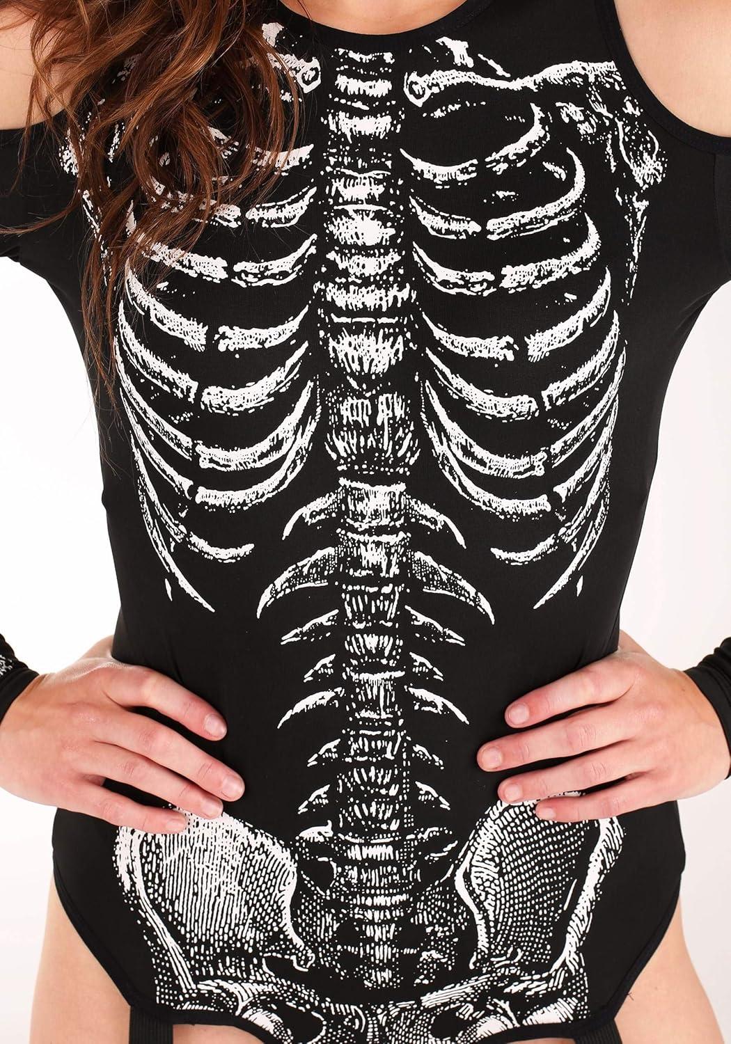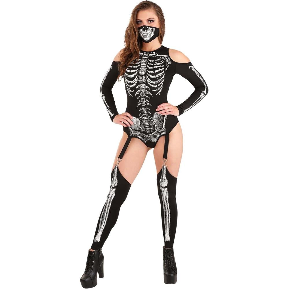 A Favorite Haunt Have you wondered what after-life after hours would be like? We're pretty sure that a happy hour with ghouls and ghosts would be pretty interesting. For one, the cocktails would include ninety percent more spooky smoke and you'd have to be very careful how many times you said Bloody Mary when you're ordering a delicious tomato juice drink. Once that famous regal Spektor is in your company, you just won't be able to get rid of her. But you know the dancing would be good. Everyone knows that the undead have a good sense of rhythm. There's a reason the people bring up the dance of the dead century after century. So, if you want to dip your toe into the river Styx club scene, this costume is a great way to disguise your living body. No bodies would ever guess that you're anything other than a well dressed and sophisticated skeleton! Product Details This skeleton bodysuit is a real stunner. It has a cold shoulder cut with long sleeves and printed off-white bones. The garter style leggings have a tough style that will look awesome solo or when paired with a pair of plain black tights or fishnet tights. Top the whole thing off with the skull detailed face mask and you'll feel like an undead diva. Dead Serious When it comes to providing you with an awesome costume, we're dead serious about it. This costume will make you feel like you rule the underworld as soon as you put it on. After all, don't you think that dancing in a bodysuit is one of the most fierce things you could do in a macabre dance club? Yeah, we're pretty sure you've got this spooky endeavor in the bag. And hey, if you like it, let us know. We always like to know when we help someone to their rightful fiendish throne! – Bodysuit – Pair of Leg Warmers – Mask