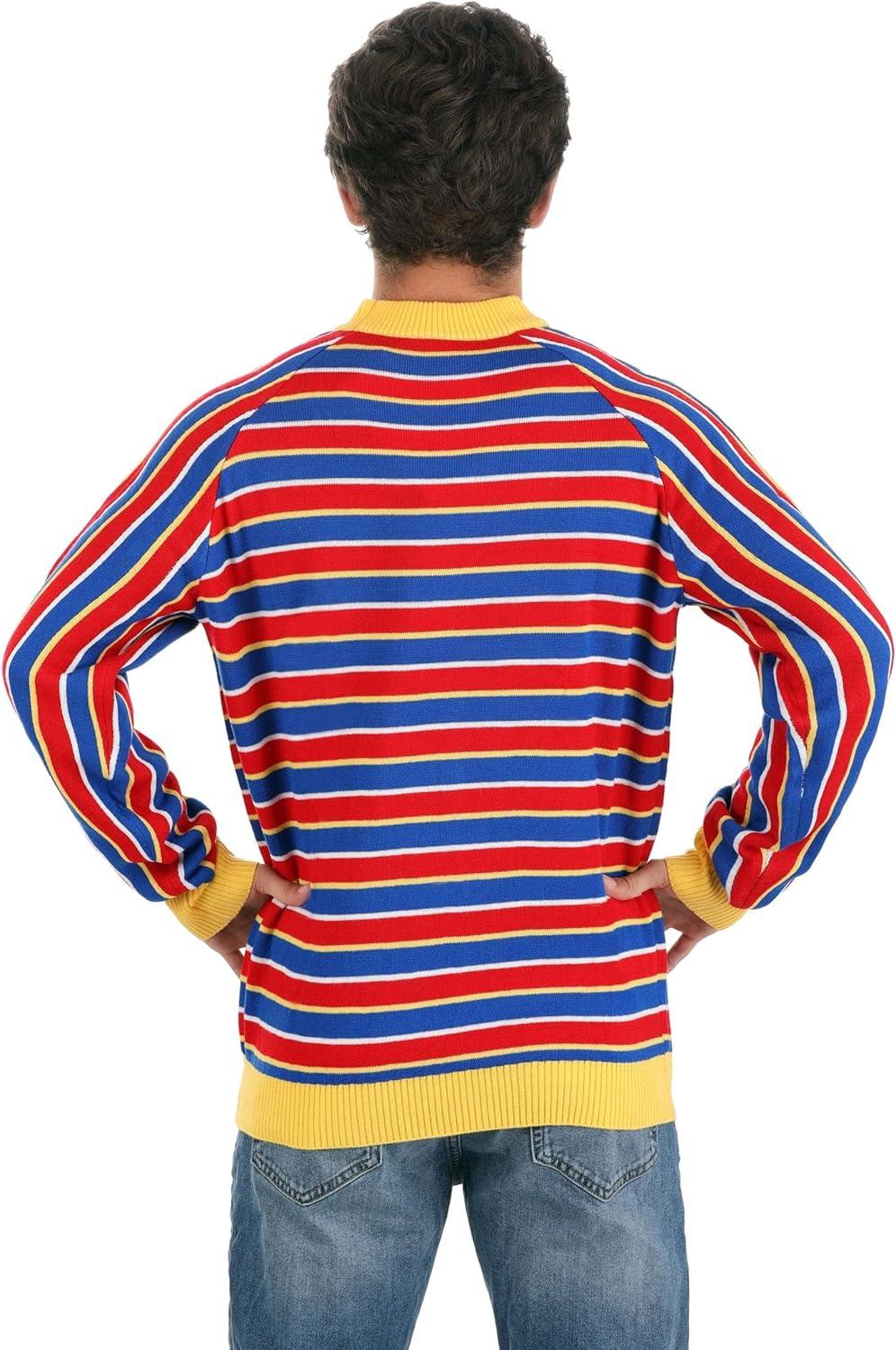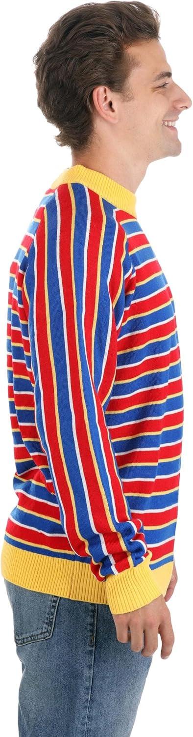Embrace the whimsical world of Sesame Street with our officially licensed Sesame Street Ernie Cosplay Knit Sweater. This exclusive sweater is designed to bring the fun right to your own door. Featuring the classic horizontal striped design and vibrant colors that Ernie is known for, this pullover sweater is made from high-quality 100% acrylic material for a cozy and comfortable fit. The rib knit collar, hemline, and cuffs ensure a stylish look while providing a snug fit. Whether you're dressing up for Halloween, attending a cosplay event, or simply channeling your inner Sesame Street fan, this Ernie Cosplay Sweater is the perfect choice. Available in sizes ranging from X-Small to 3X, it guarantees a great fit for everyone. Make a statement and showcase your love for Sesame Street with our exclusive Ernie Cosplay Sweater.