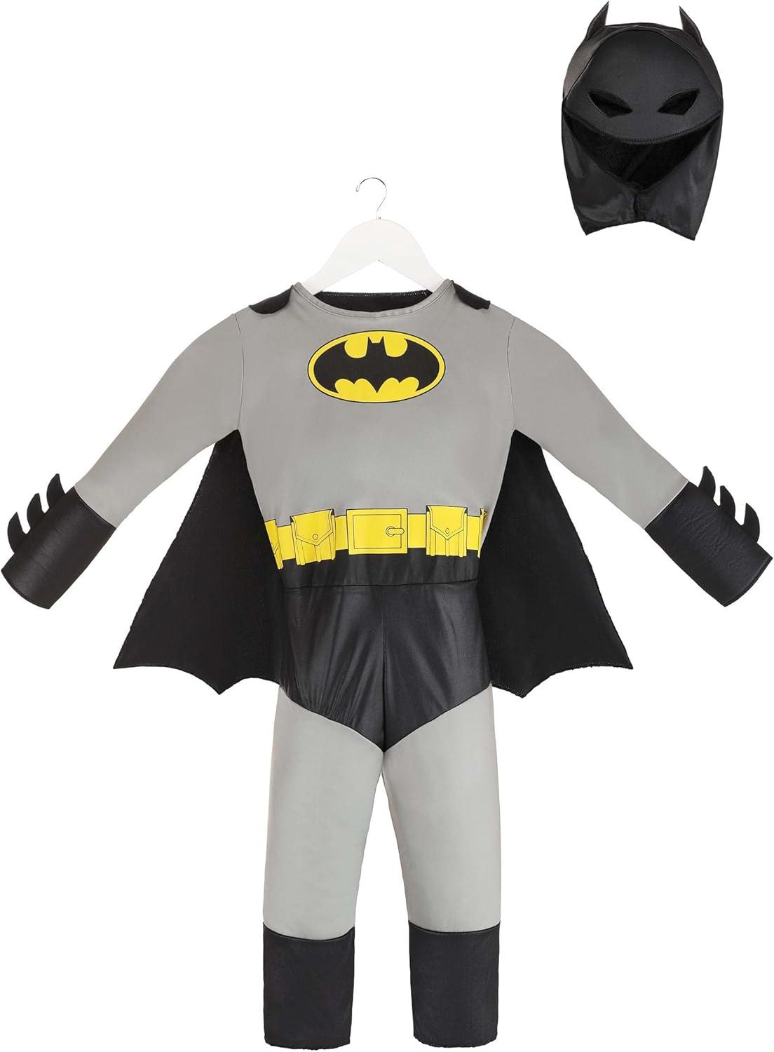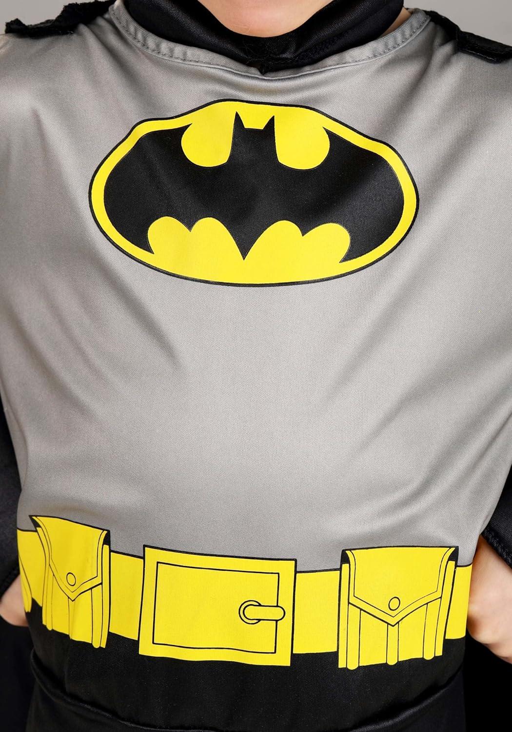 Toddler Classic Batman Costume, Black Superhero Suit, Cape, Mask & Foam Muscles for Movie Hero Cosplay Dress-Up