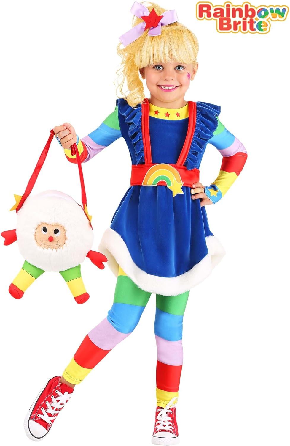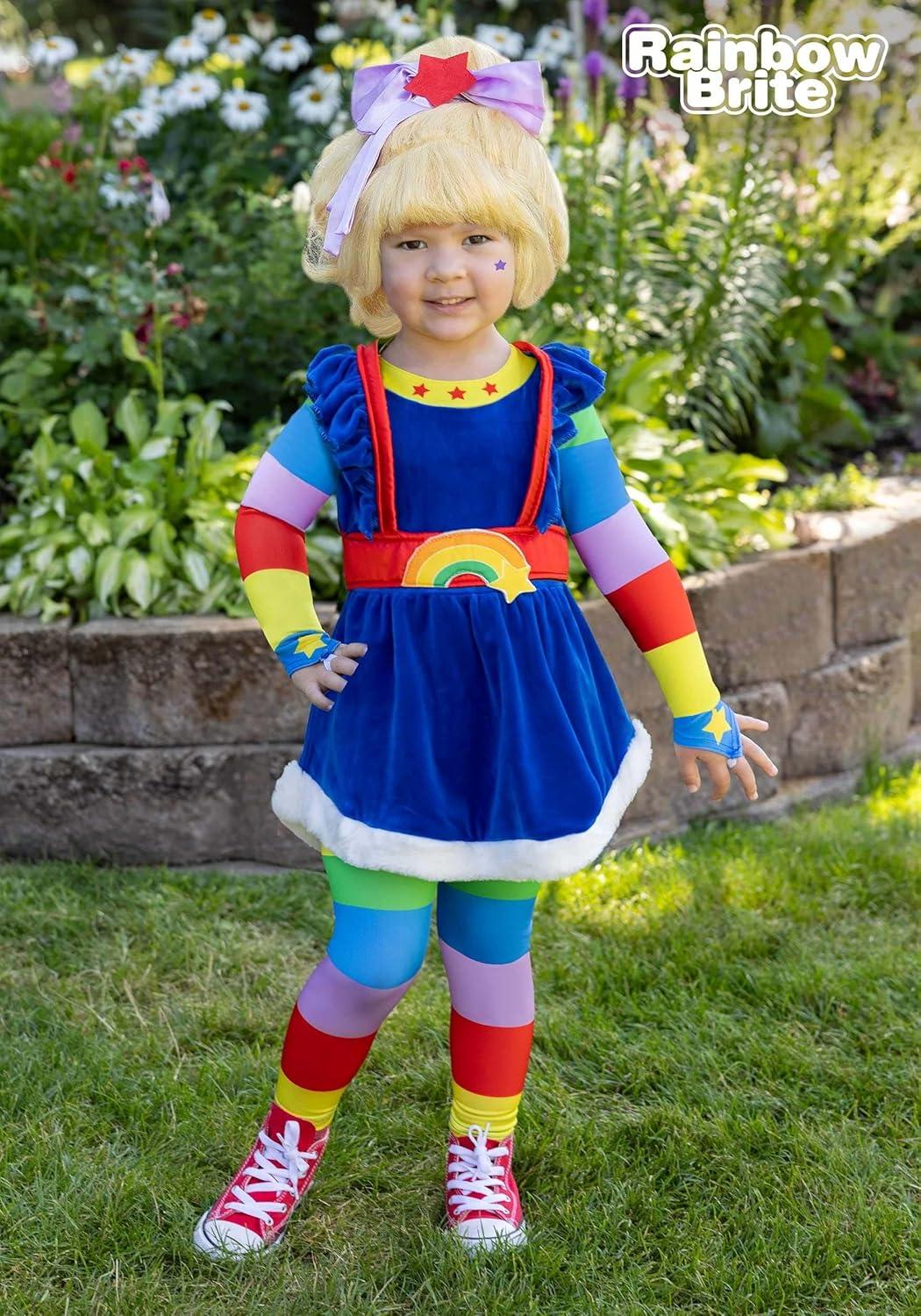 Toddler Girl Rainbow Brite Halloween Costume | Dress w/Attached Belt, Leggings, & Hair Bow for a Magical 80s-Inspired Look