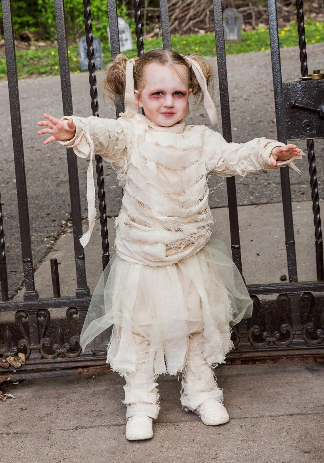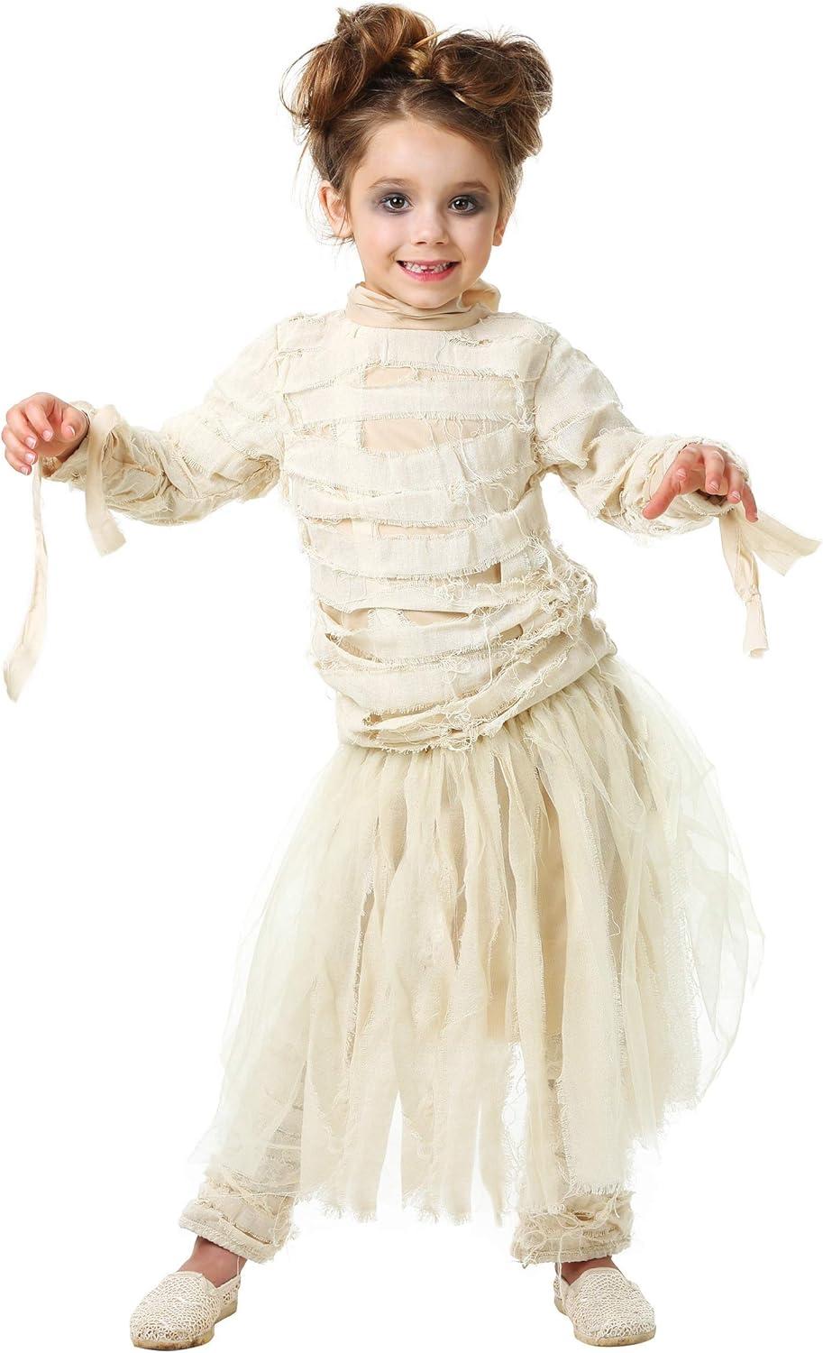 Toddler Mummy Costume For Girl’s, Adorable Egyptian Mummy Outfit With Shirt, Skirt, Leg Warmers and Strips Of Fabric