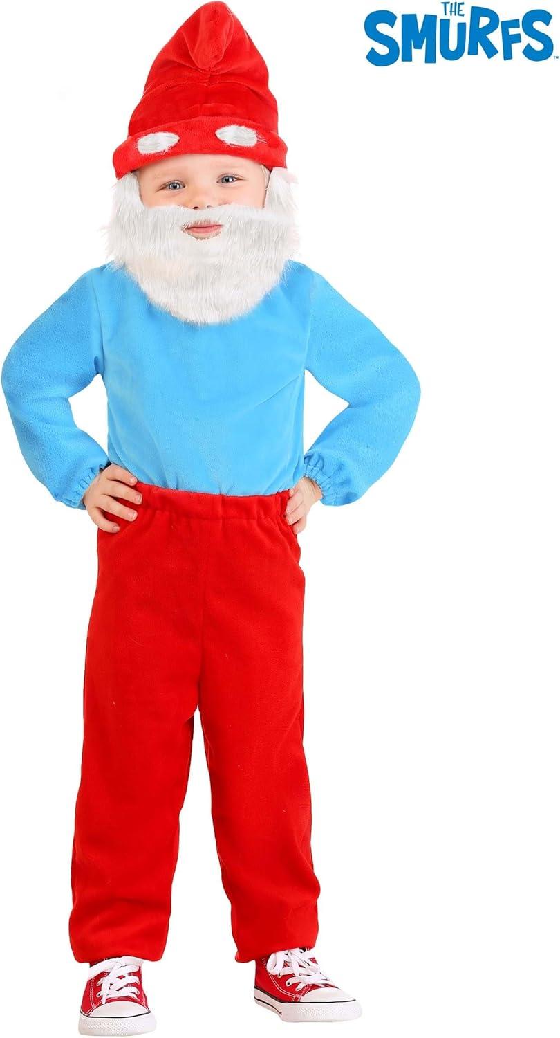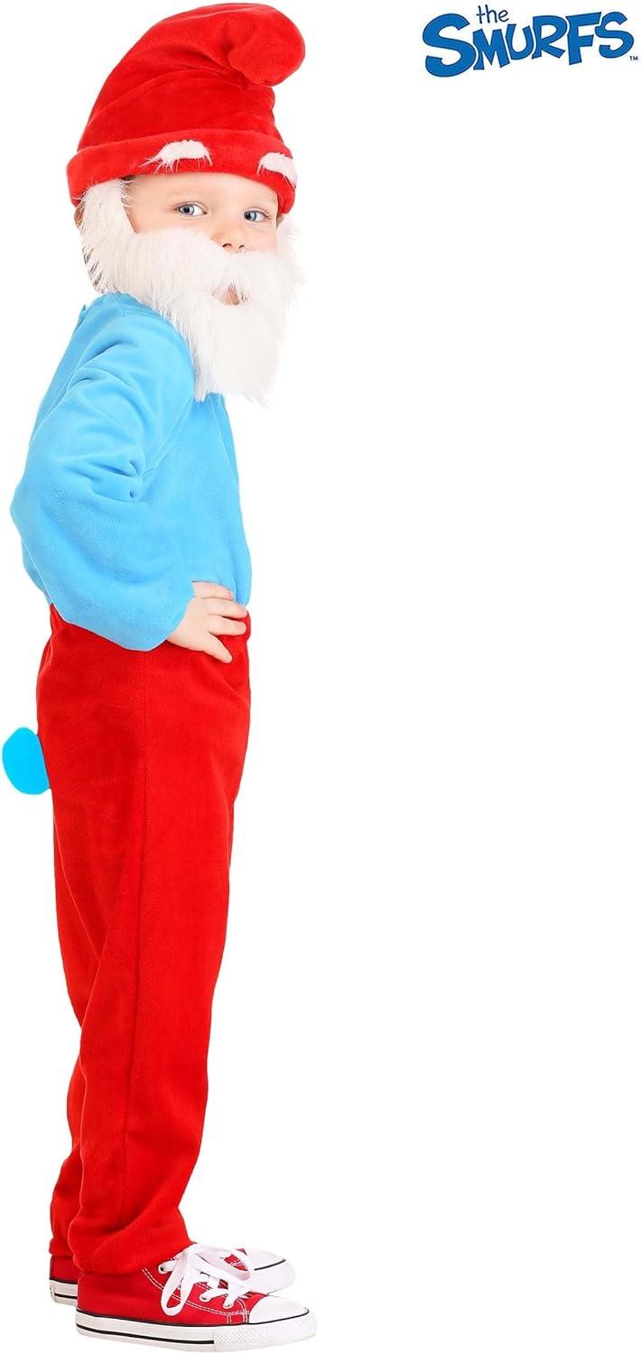 Officially Licensed The Smurfs Papa Smurf Costume for Toddlers Papa Smurf is the proud leader of Smurf village and all the residents of Smurf Forest, and now your child can become the timeless character for Halloween! This Toddler Papa Smurf Costume was lovingly crafted by our team of nostalgia loving costume designers so that your baby boy or girl can bring out their best smurf-self as Papa Smurf! Product Design: Turn your child into the leader of the Smurfs with this quick and easy costume! The Toddler Papa Smurf Costume is an officially licensed costume inspired by the character from the cartoon series. It comes with a light blue shirt, a pair of red pants that fit with elastic, and a matching hat. The finishing touch to this outfit comes in the form of a faux fur beard, which fits with hook and loop fasteners. Product Details: 100% super soft polyester, velvet Pants have elastic waistband Hat has slight elastic for secure fit Faux eyebrows are attached to the hat Mustache and beard attaches to the hat with hook and loop fastener Size Chart: 2T: Chest=20 1/4″; Length=14″; Waist=15″ – 26″; Pants Length=18 1/4″ 4T: Chest=22 1/2″; Length=15 1/4″; Waist=16″ – 27″; Pants Length=22 1/4″ About Us: Fun Costumes are exclusively made by us and begin with passion, teamwork, and industry expertise decades in the making. Our products are proof that with the right people even a simple idea can grow into something incredible. We started in a small garage in Minnesota, providing costumes to our local community, and now we’re creating costumes for people all around the world. When it comes to Kids Smurfs Costumes this is toddler Papa Smurf costume is the one to choose to have your little all done up as the lovable leader of The Smurfs! COSTUME INCLUDES: This officially licensed Papa Smurf Costume for toddlers comes with a blue velvet shirt, red Papa Smurf pants, and a Papa Smurf Hat that features an attached white beard. FROM FUN COSTUMES: Our Made By Us original cos