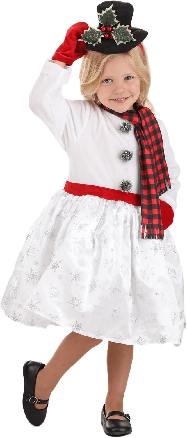 Toddler Snowgirl Costume | Glitter Christmas Dress, Scarf, Mittens, Hat | Holiday Costumes