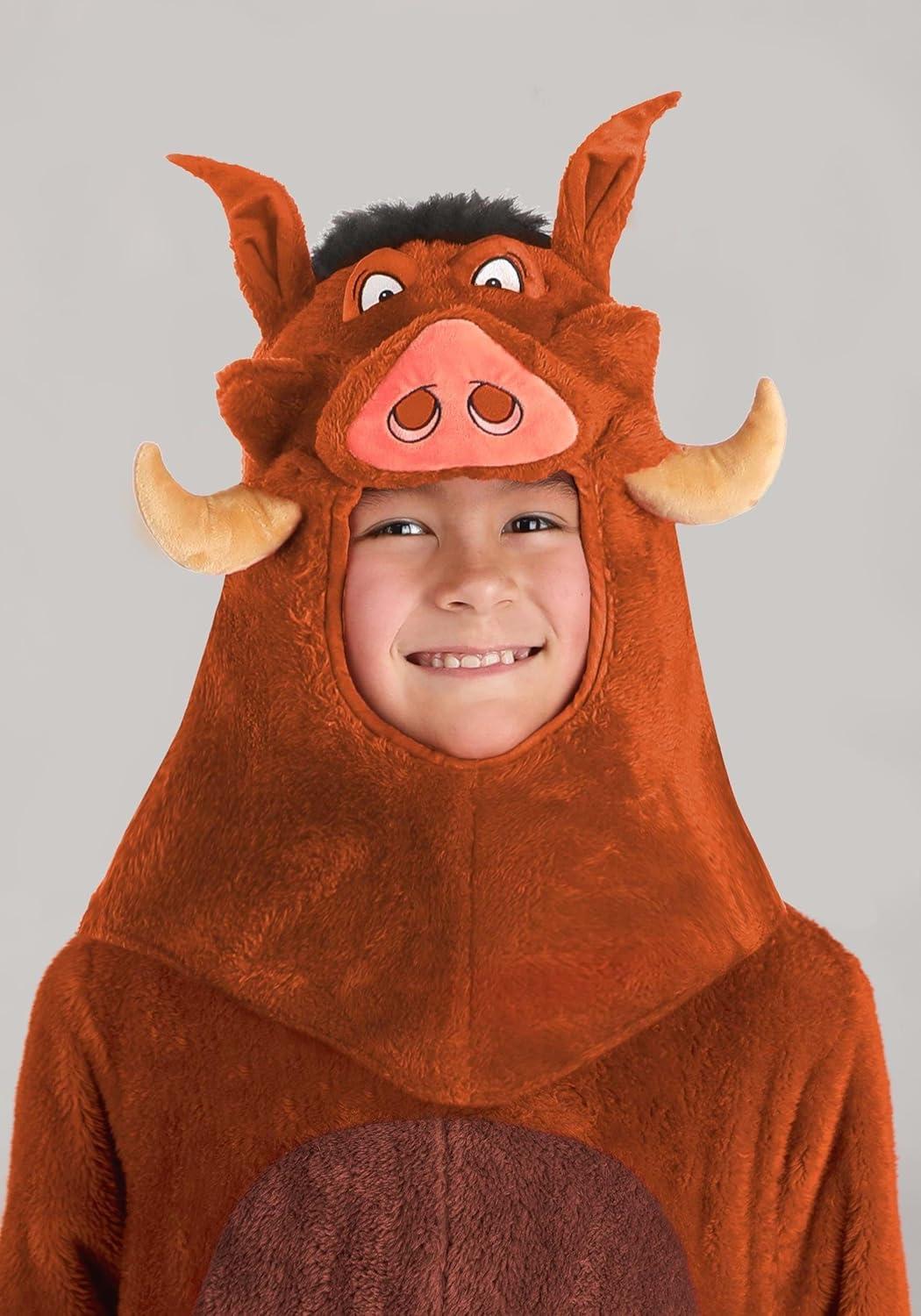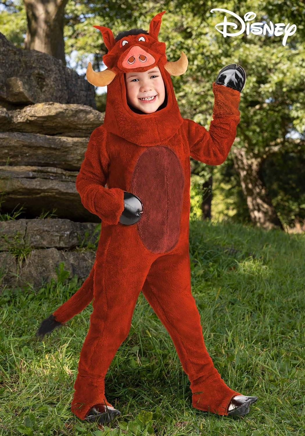 Toddler The Lion King Pumbaa Costume | Pumbaa the Warthog Disney Character Costume Jumpsuit with Hood