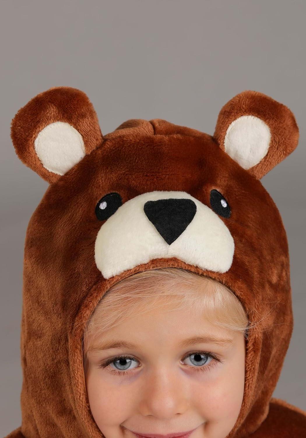 Toddler Wild Teddy Bear Costume | Hooded Animal Jumpsuit with Paw Mitts and Shoe Covers for Halloween, Dress Up