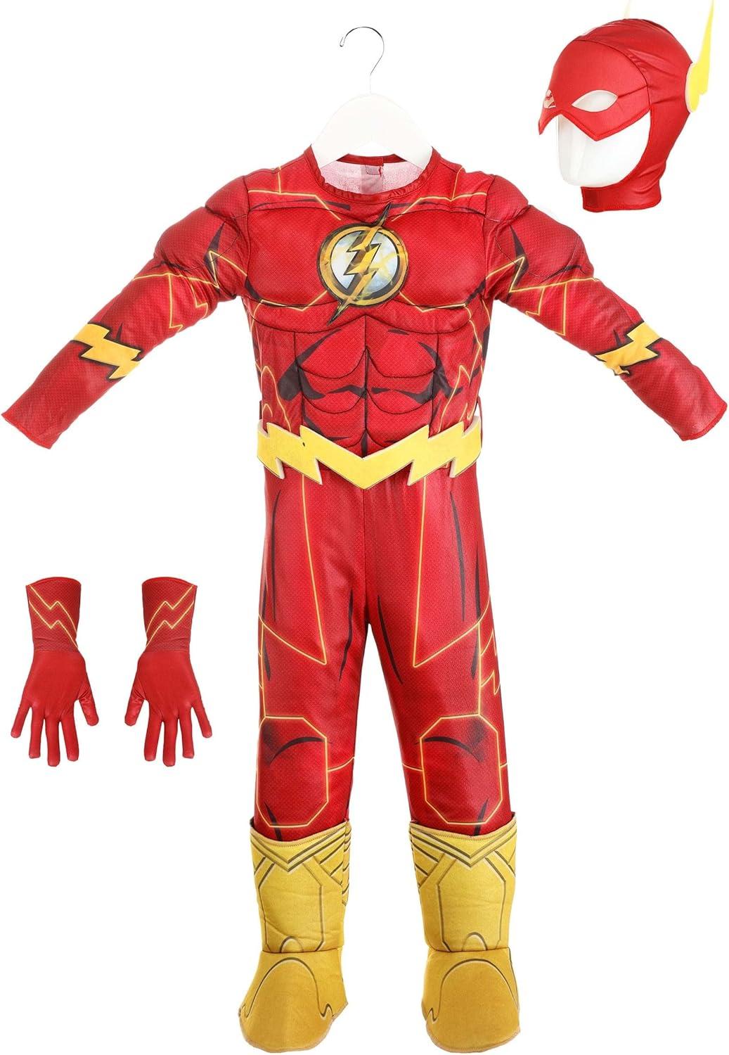 Toddlers Deluxe Flash Costume, Red Superhero Suit for Movie Comic Cosplay, Hero Dress-Up Parties & Halloween