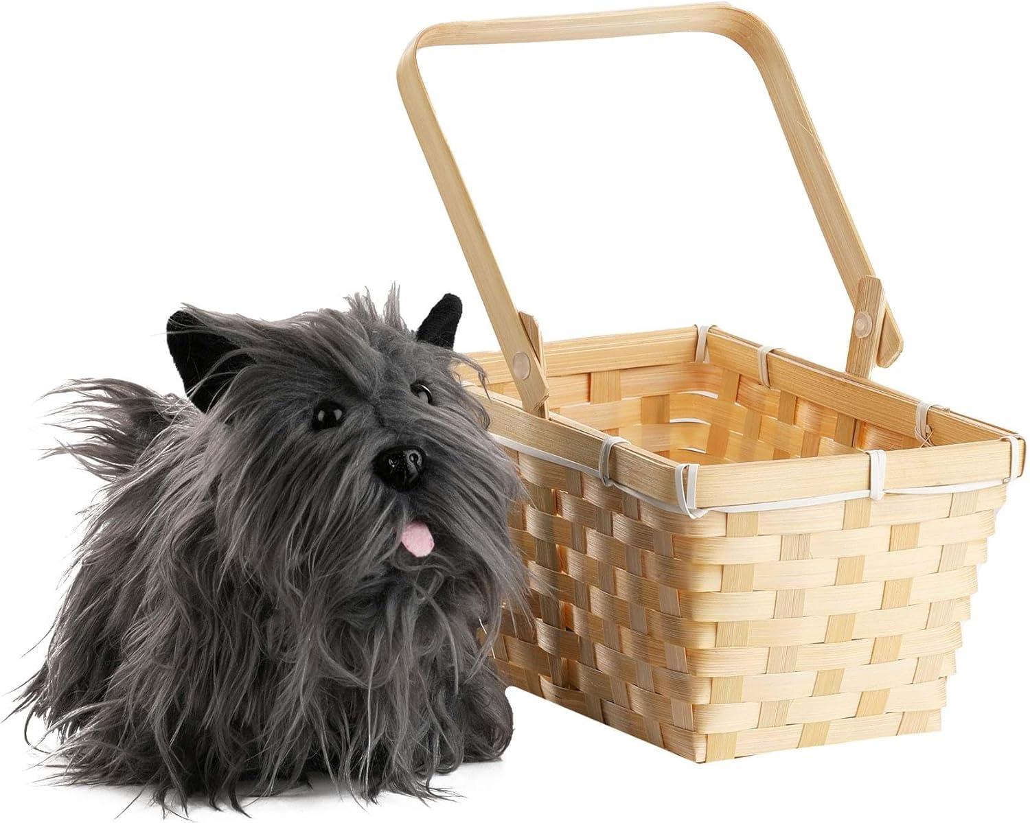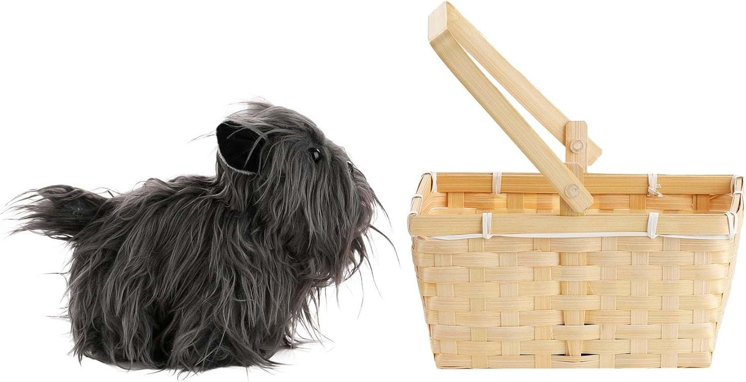 Toto in a Basket Accessory | Wonderful Wizard of Oz Costume Companion, Terrier Dog Plush In Wicker Picnic Basket