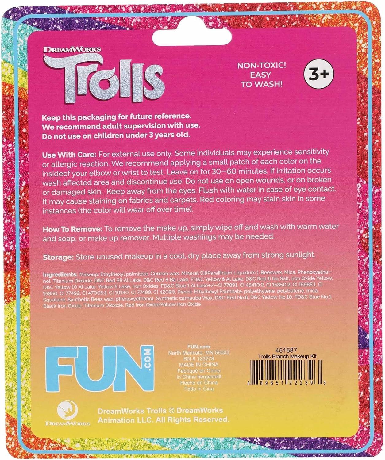 Introducing the Officially Licensed Trolls Branch Costume Makeup Kit Join Branch, the beloved character from Trolls, and embark on a journey of colorful transformation with our Trolls Branch Costume Makeup Kit! Whether it's for Halloween, a themed party, or simply a day of imaginative play, this kit is your ticket to becoming the grumpily endearing Branch himself. Dive into the Trolls world with ease using our high-quality cream makeup. Crafted to perfection, our makeup delivers Branch's signature look effortlessly. Get ready to paint on the fun and adventure with smooth, vibrant colors. Safety always comes first, especially when it comes to our little ones. Our makeup kit is non-toxic, ensuring it's gentle on the skin. After the adventure is over, simply wash off with soap and water for a hassle-free cleanup. Wondering how to remove the makeup after a day of Troll-tastic fun? Worry not! We've got you covered with easy-to-follow removal instructions conveniently located on the back of the package. Cleanup has never been this stress-free! This makeup kit is thoughtfully designed for young fans of Trolls, making it suitable for ages 3 and up. Whether it's a birthday party, playdate, or a day of at-home creativity, our kit is the perfect companion. Rest assured that our Trolls Branch Costume Makeup Kit is officially licensed, guaranteeing an authentic and true-to-character experience. Get ready to embody the spirit of Branch with confidence! Transform into Branch and embrace his lovable grumpiness as you explore the world of Trolls. Whether it's the quest for happiness, colorful adventures, or just a day of imaginative play, our Trolls Branch Costume Makeup Kit is your key to the Trolls universe. Experience the magic of Trolls while enjoying the peace of mind that our makeup kit is safe, easy to use, and officially licensed. Order yours today and step into the shoes – and the vibrant colors – of Branch. It's time to find your own tune and let your true colors shine! –