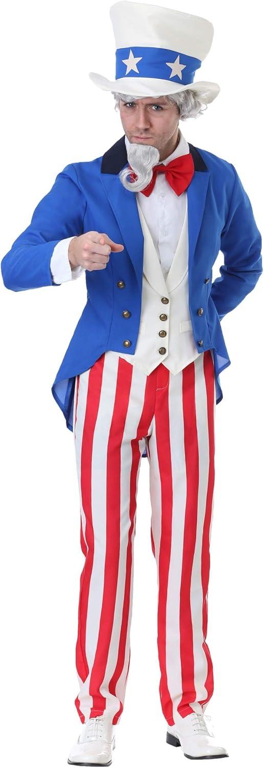 Uncle Sam Patriotic Costume – Includes Striped Pants, Blue Jacket, Vest, Top Hat, Bow Tie(Costume)