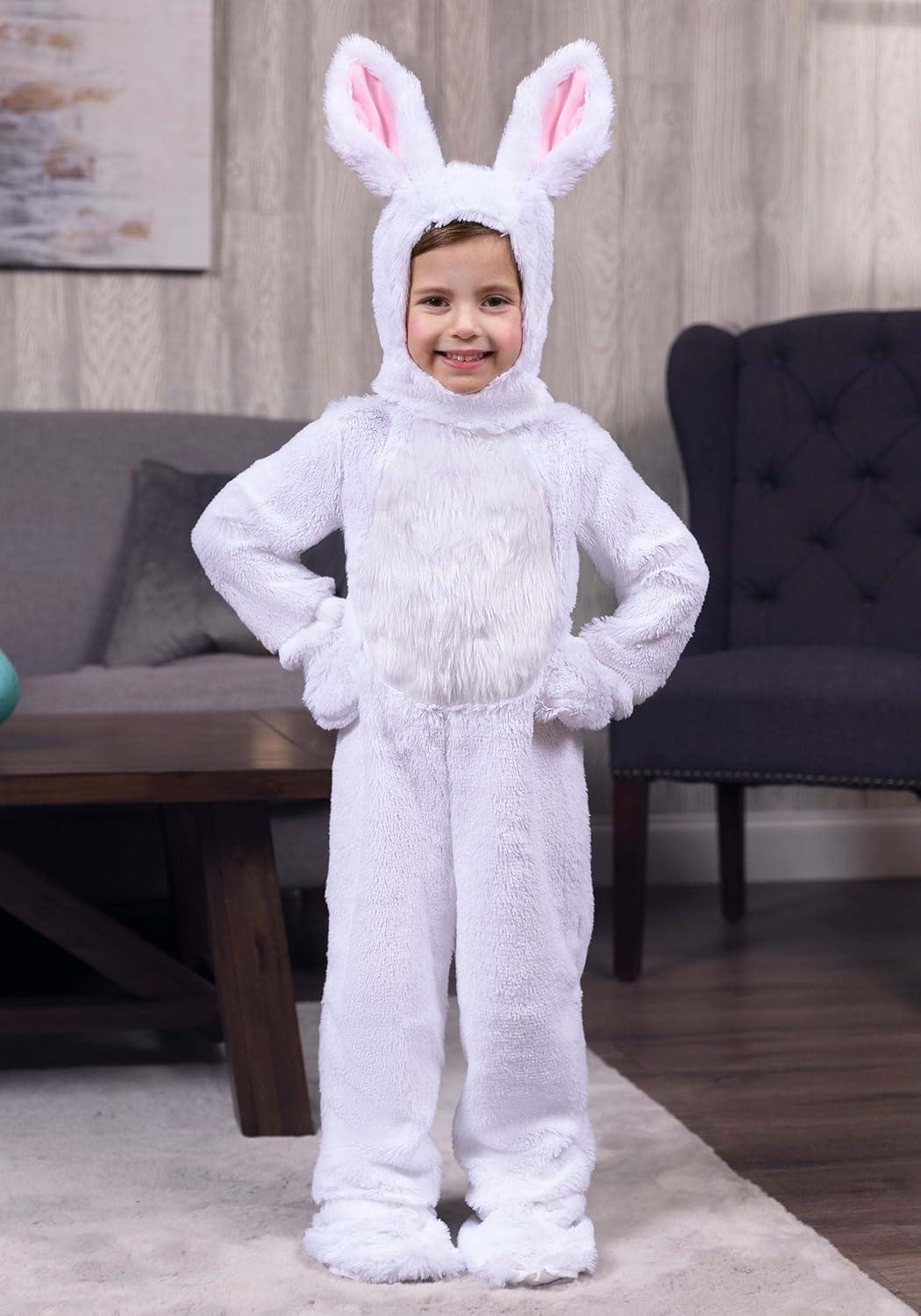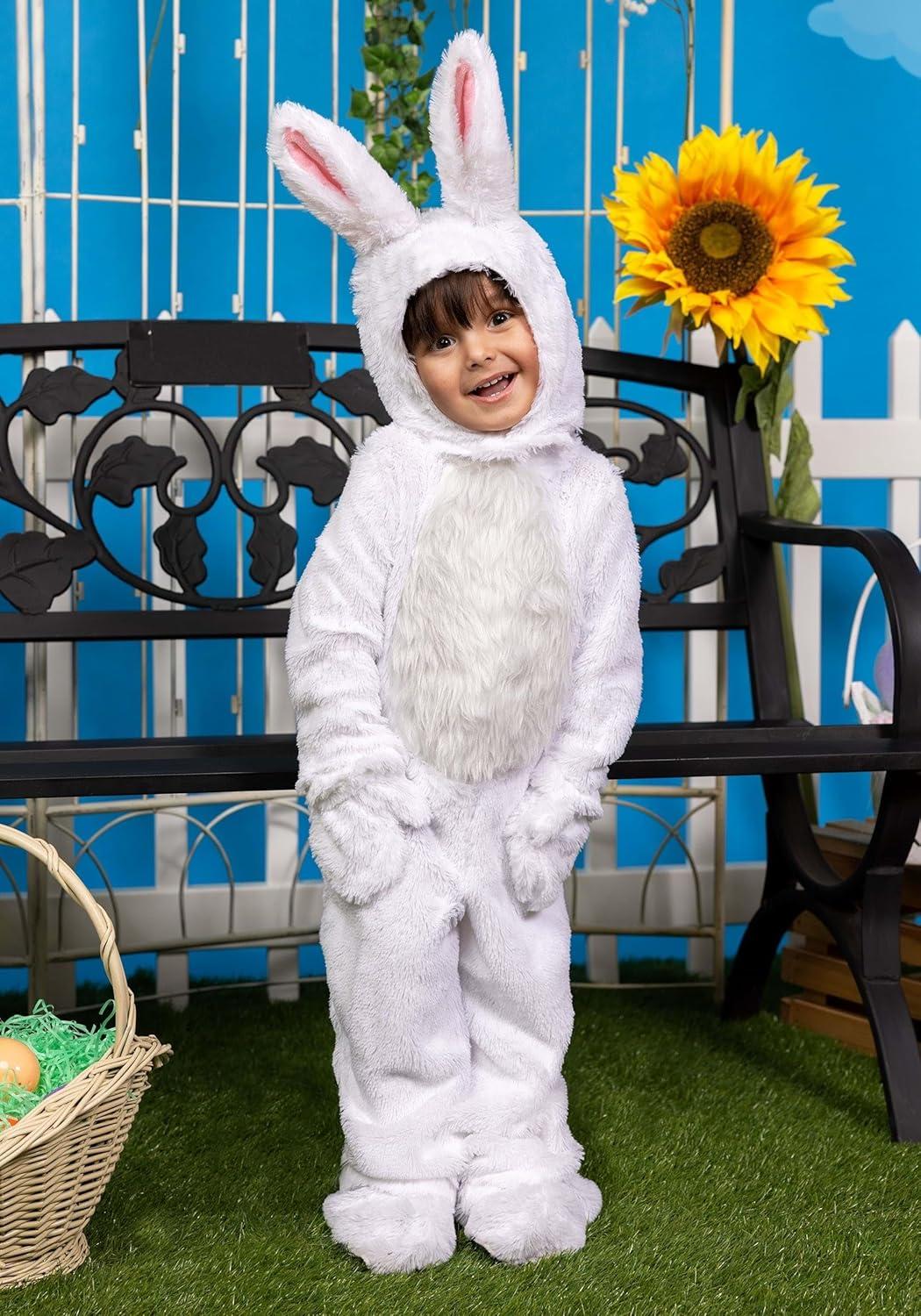 Step into the world of make-believe with this toddler white bunny costume, designed with comfort in mind. Crafted from 100% polyester, this toddler bunny costume is not only comfortable but also easy to clean, ensuring endless hours of fun. This bunny costume for toddlers features a convenient hook and loop fastener at the center back, making dressing up a breeze. The secure fit of this bunny costume for toddler ensures comfort for repeated use on multiple occasions. The charm of this bunny costume is further enhanced by the hood, complete with a hook and loop fastener under the chin and plastic rods in the ears. These features make this the perfect dress up for any toddlers, allowing them to play and move around freely without worry of the hood slipping off. Take note of the thoughtful inclusion of mitts with an elastic wrist cuff in this costume design. This feature ensures a snug fit, preventing the mitts from slipping off and maintaining the overall look of the costume. Lastly, this costume includes shoe covers with elastic at the ankles and under the foot, ensuring a secure fit. This design keeps the shoe covers in place as your child moves around, crucial for safety as it prevents any potential trips or falls.
