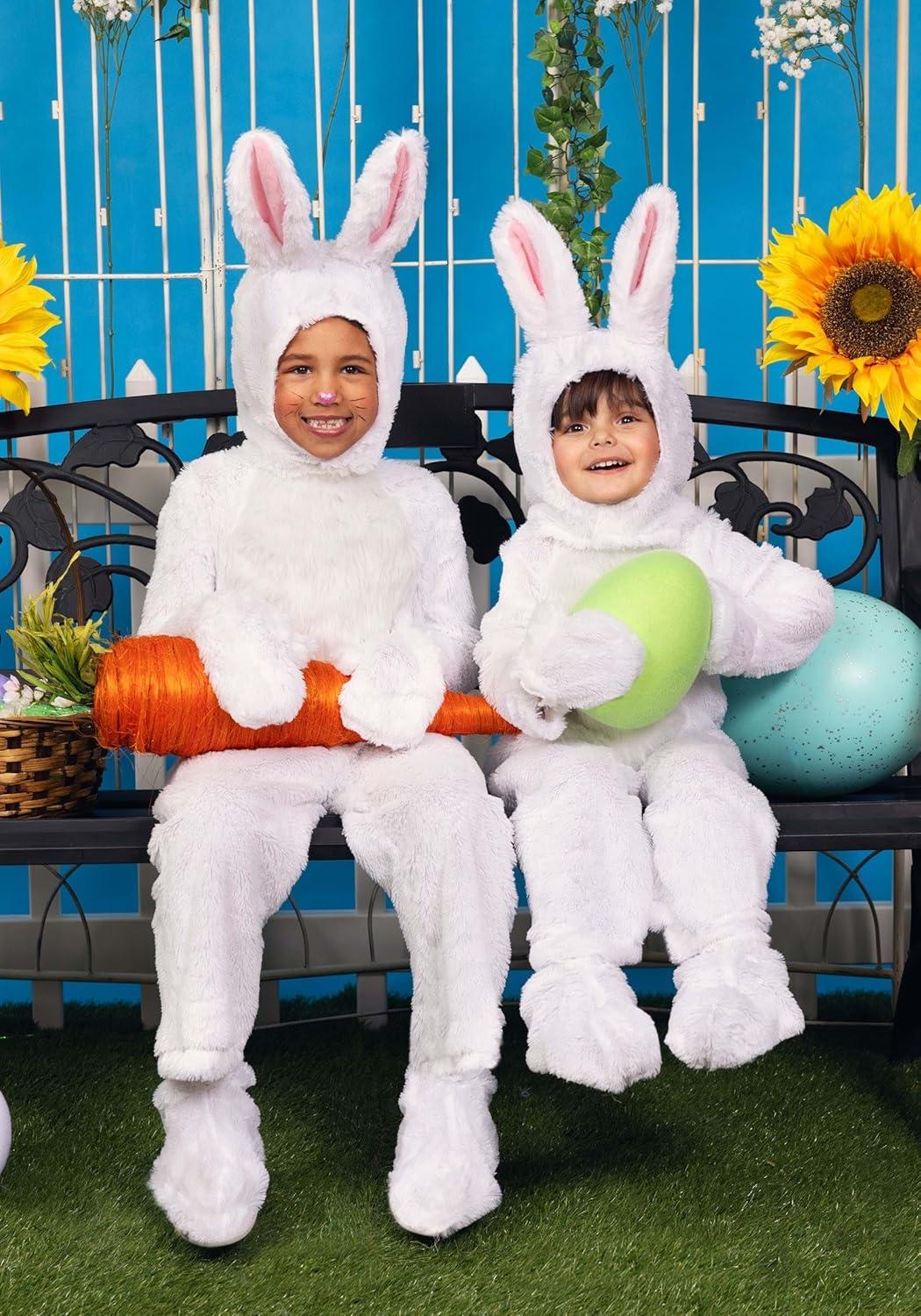 White Open Faced Bunny Costume for Toddler, Fluffy Bunny Jumpsuit with Hood, Pair Of Mitts, And Pair Of Shoe Covers(Bundle W/ Carrot)