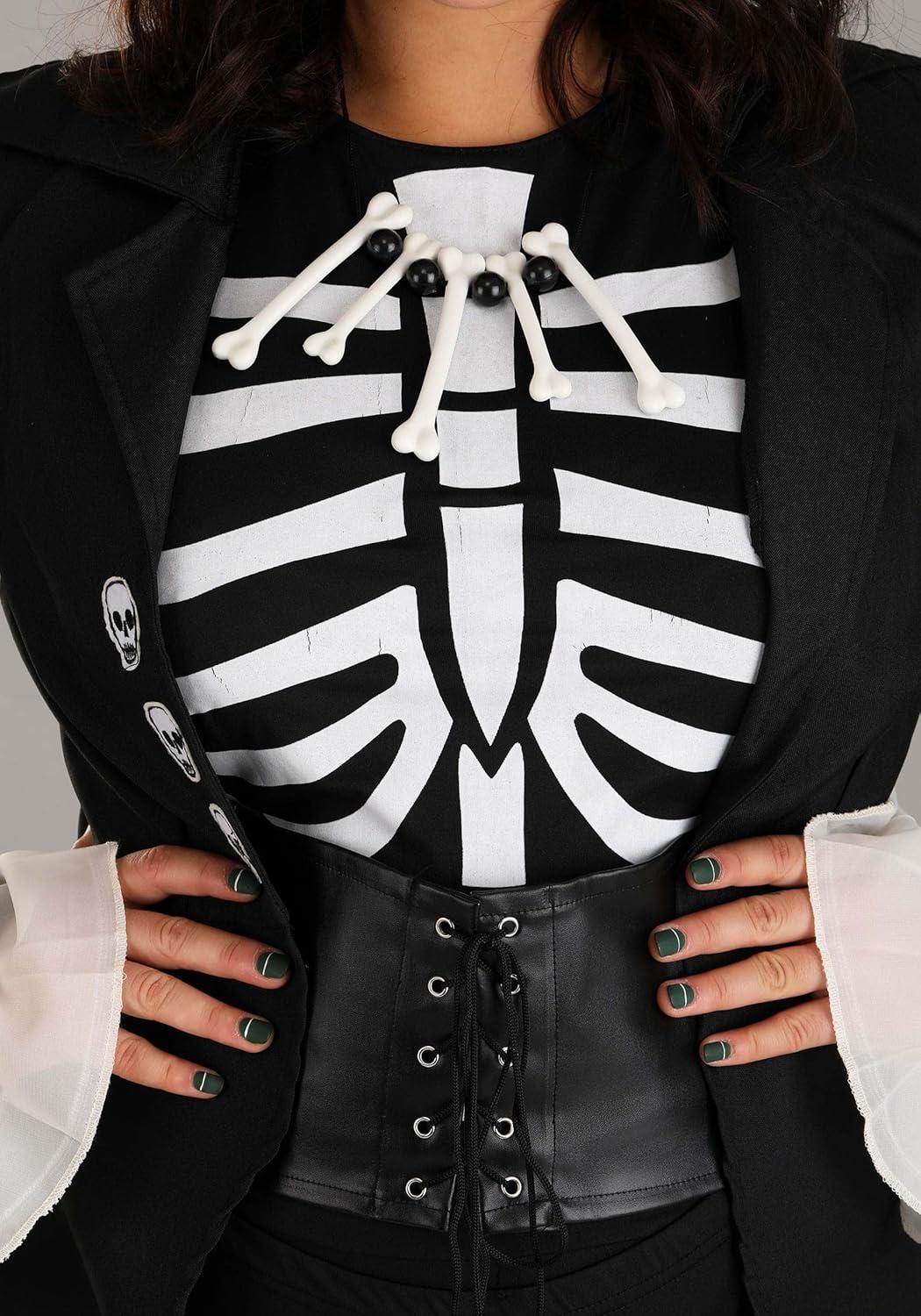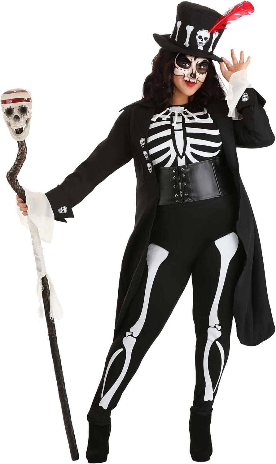 Women s Voodoo Skeleton Plus Size Halloween Costume – Jumpsuit, Corset, Briefs, Jacket & Hat