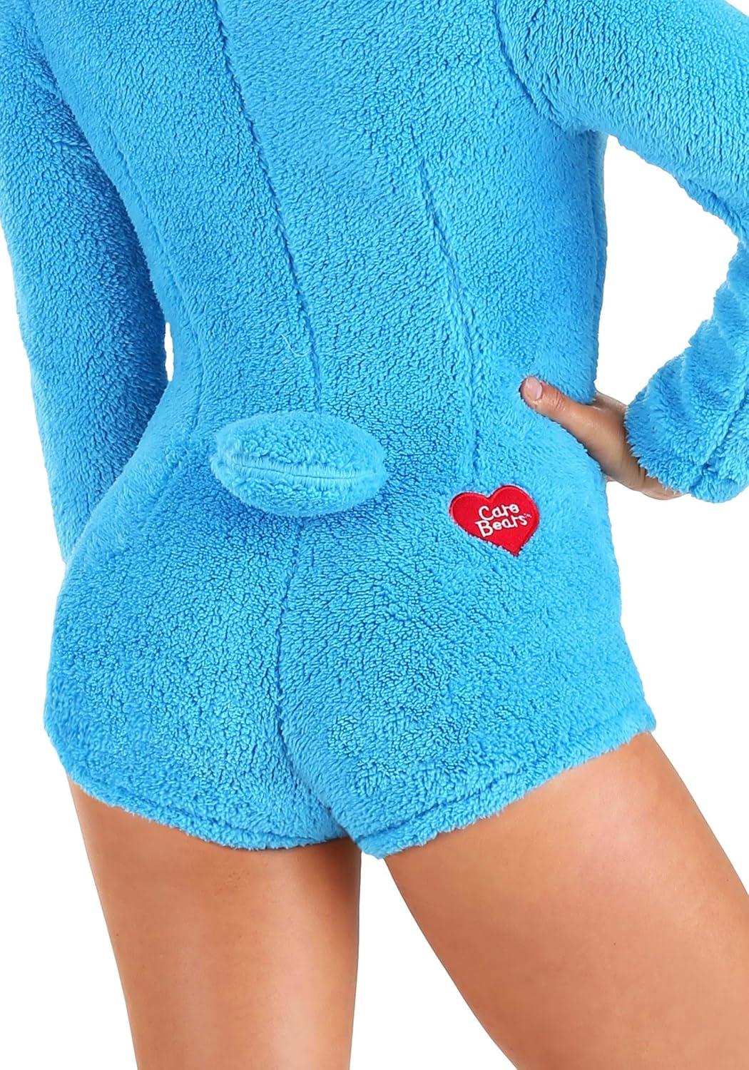 Unleash your inner Care Bear with our officially licensed Women's Sexy Grumpy Bear Romper Costume! Crafted from plush Sherpa fleece in a cozy blue design with a hood featuring adorable furry ears, this romper encapsulates the essence of Grumpy Bear's iconic rainy day badge. Zip up the front to embody this beloved Care Bear character with ease, complete with a playful tail and the genuine Care Bears logo heart on the back for that extra touch of authenticity. Available in sizes XXS to XL, our romper ensures both a comfortable and stylish fit, making it ideal for Halloween parties or simply lounging around in snug comfort. The blend of charm and official Care Bears merchandise in our exclusive Made By Us costume design guarantees a fun and authentic experience, bringing the magic of Care Bears to life with every wear. Embrace the coziness and whimsy of Grumpy Bear with our Women's Sexy Grumpy Bear Romper Costume, a must-have for fans of Care Bears and all things bear-related! Check out our storefront for more exciting Fun Costumes that are sure to ignite your creativity and bring joy to your dressing up adventures.
