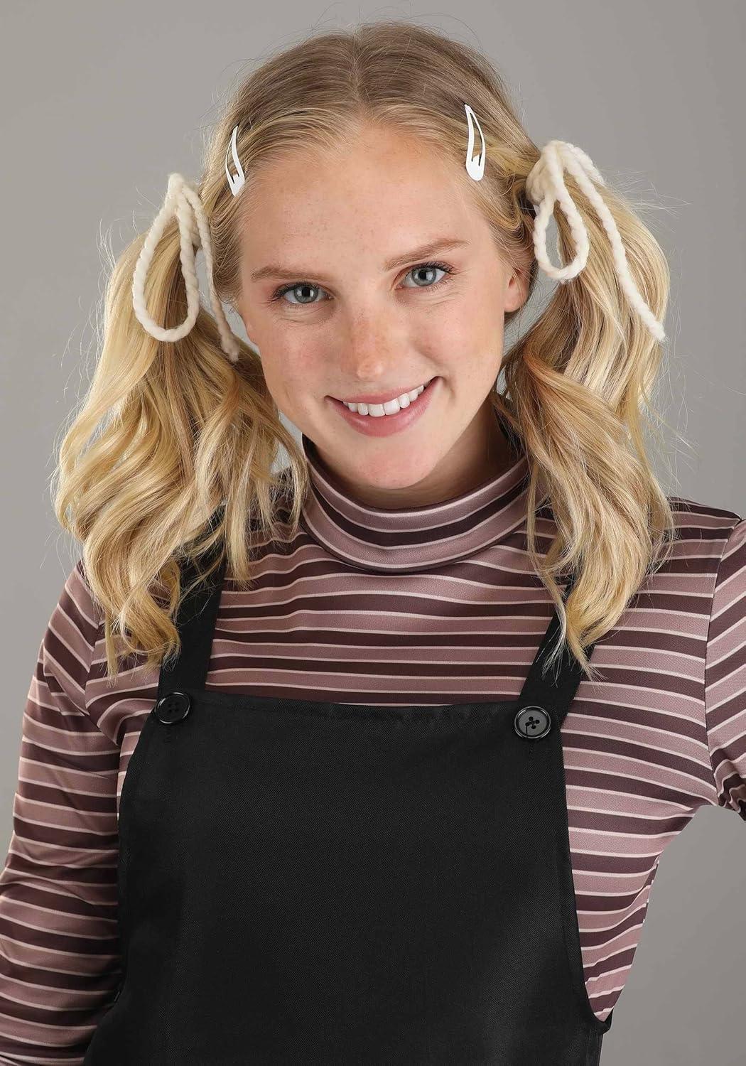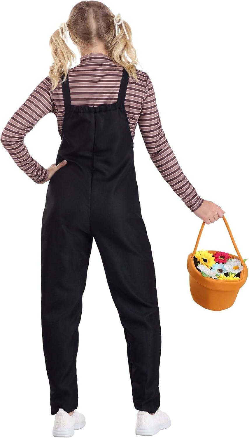 Take inspiration from Gertie and her creative thinking with this officially licensed Adult Gertie costume from E.T. the Extra-Terrestrial. The striped shirt and overalls are a recreation of little Gertie's style and a pair of hair bows have you set for her spunky attitude. The flower pot bag is an ideal accessory whether seeing off a friend or completing a group costume! E.T. the Extra-Terrestrial is a trademark and copyright of Universal Studios. Licensed by Universal Studios Licensing LLC. All Rights Reserved. – Shirt – Overalls – Pair of Hair Ties – Treat Bag