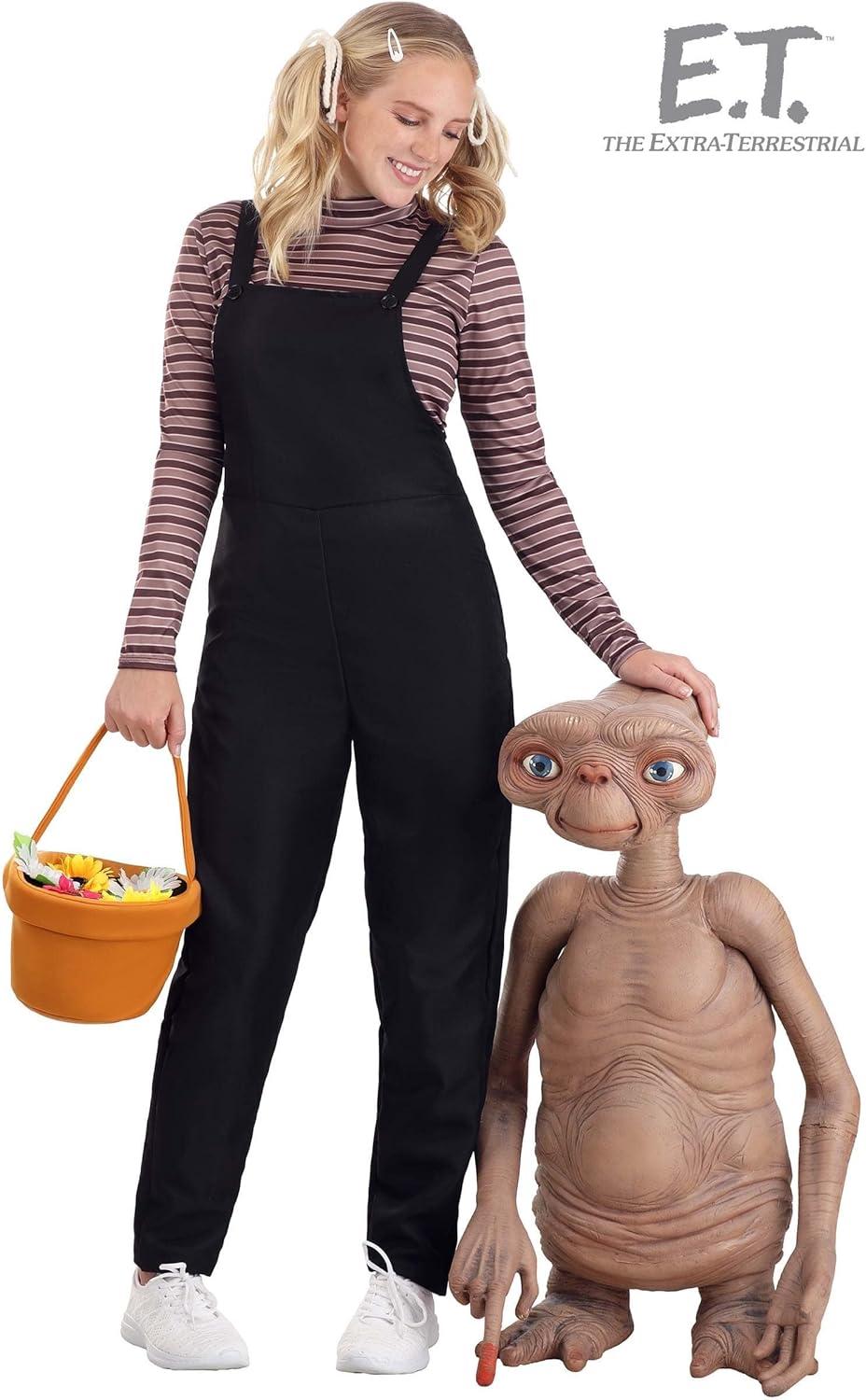 Women’s E.T. Gertie Costume – Striped Shirt, Overalls & Treat Bag, Officially Licensed