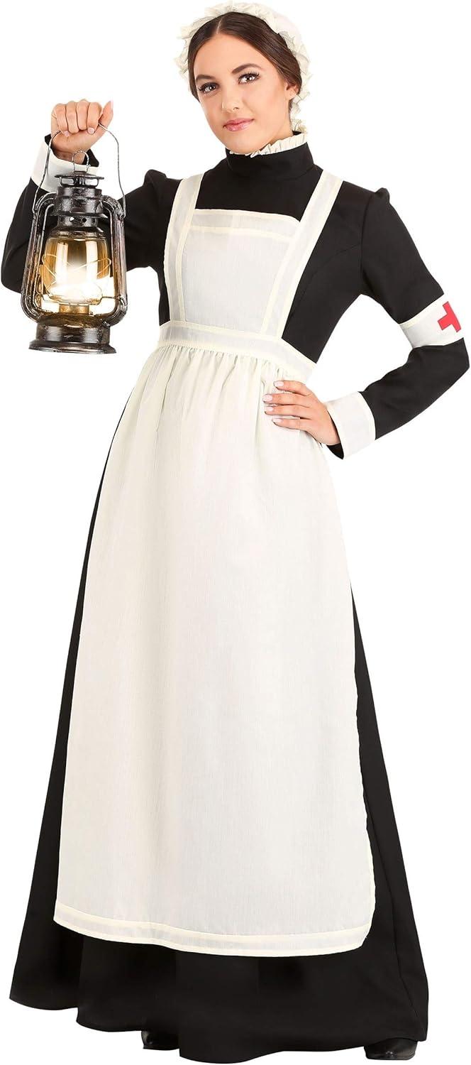 Women’s Florence Nightingale Costume Adult Nurse Dress with Apron, Bonnet, and Arm Band Halloween Historical Nurse