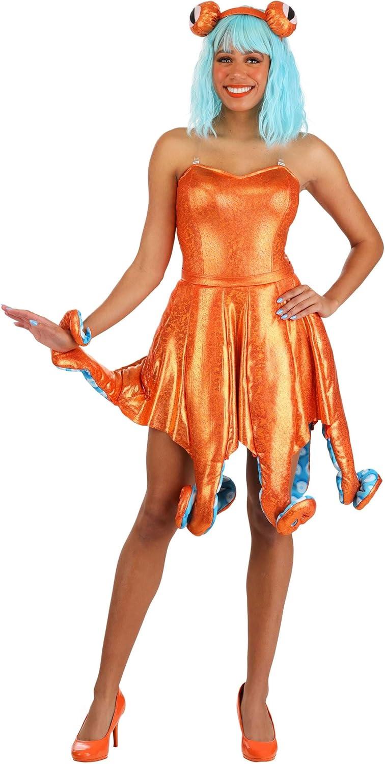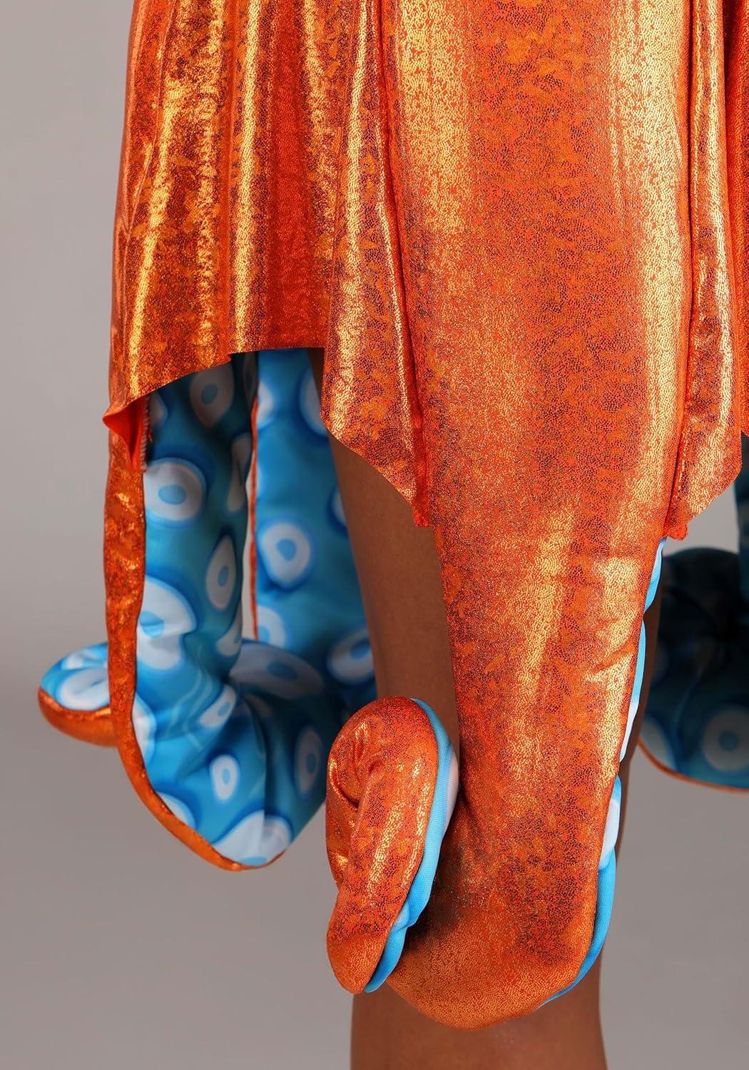 Women’s Iridescent Orange Octopus Costume Dress – Sea Creature Outfit with Tentacle Skirt and Ocean-Inspired Details