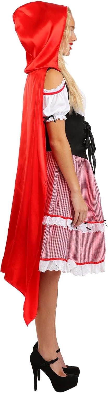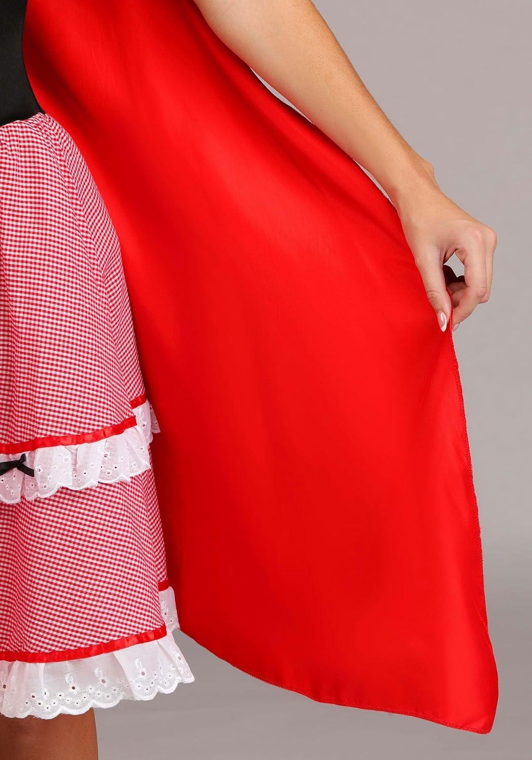 The Fun Costumes Knee Length Red Riding Hood Costume Little Red Riding Hood time! Think you've got what it takes to play the iconic character for Halloween? With this stunning Red Riding Hood Knee Length Dress, you'll have both the confidence and the style to be a true classic. And that's what we're all about at Fun Costumes. Made by Us, this costume was created by our very own team of artists, designers, and developers so that we could offer a high-quality Red Riding Hood Costume for the masses. Give it a try, with or without a friend as the Big Bad Wolf, we're sure it will be a lot of fun! Attention to Detail We designed this Little Red Riding Hood Costume as a dress that comes with an attached hood and cape. The one-piece dress is styled like a peasant blouse, corset, and picnic skirt. The satin hooded cape is red and is sewn to the shoulders for easy wear. With accents like ribbon lacing, ribbon bows, and eyelet ruffles, you're sure to be enamored with its elaborate style! Product Details: 100% polyester gingham, satin & interlock knit fabrics One-piece dress styled to look like corset vest over gingham skirt & peasant blouse Satin hooded cape is sewn to shoulders & back neckline Bodice has ribbon lacing through metal eyelets Skirt is trimmed w/ ribbon bows & eyelet ruffles Fastens w/ concealed zipper in right side seam Size Chart: XS: Chest=29″; Waist=23″; Dress Length=39 1/4″; Cape Length=39″ S: Chest=31″; Waist=24″; Dress Length=39 1/2″; Cape Length=39 1/2″ M: Chest=33″; Waist=26″; Dress Length=40″; Cape Length=40″ L: Chest=36″; Waist=29″; Dress Length=40 1/2″; Cape Length=40″ XL: Chest=38″; Waist=31″; Dress Length=40 3/4″; Cape Length=40″ About Us: Fun Costumes are exclusively Made by Us and begin with passion, teamwork, and industry expertise decades in the making. Our products are proof that with the right people even a simple idea can grow into something incredible. We started in a small garage in Minnesota, providing costumes to our local community, and