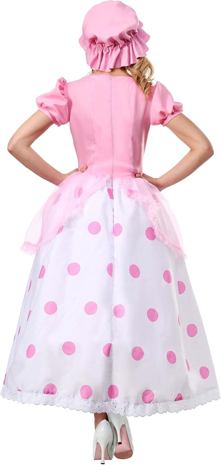 Women’s Little Bo Peep Halloween Costume | Classic Toy Story Character Outfit with Pink and Blue Bonnet, Polka Dot Dress(Bundle W/ Staff)