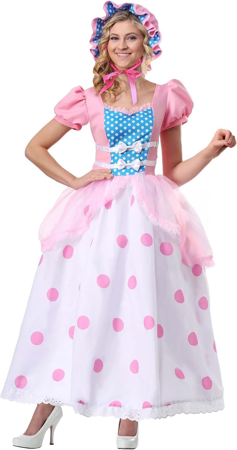 Women’s Little Bo Peep Halloween Costume | Classic Toy Story Character Outfit with Pink and Blue Bonnet, Polka Dot Dress(Costume)
