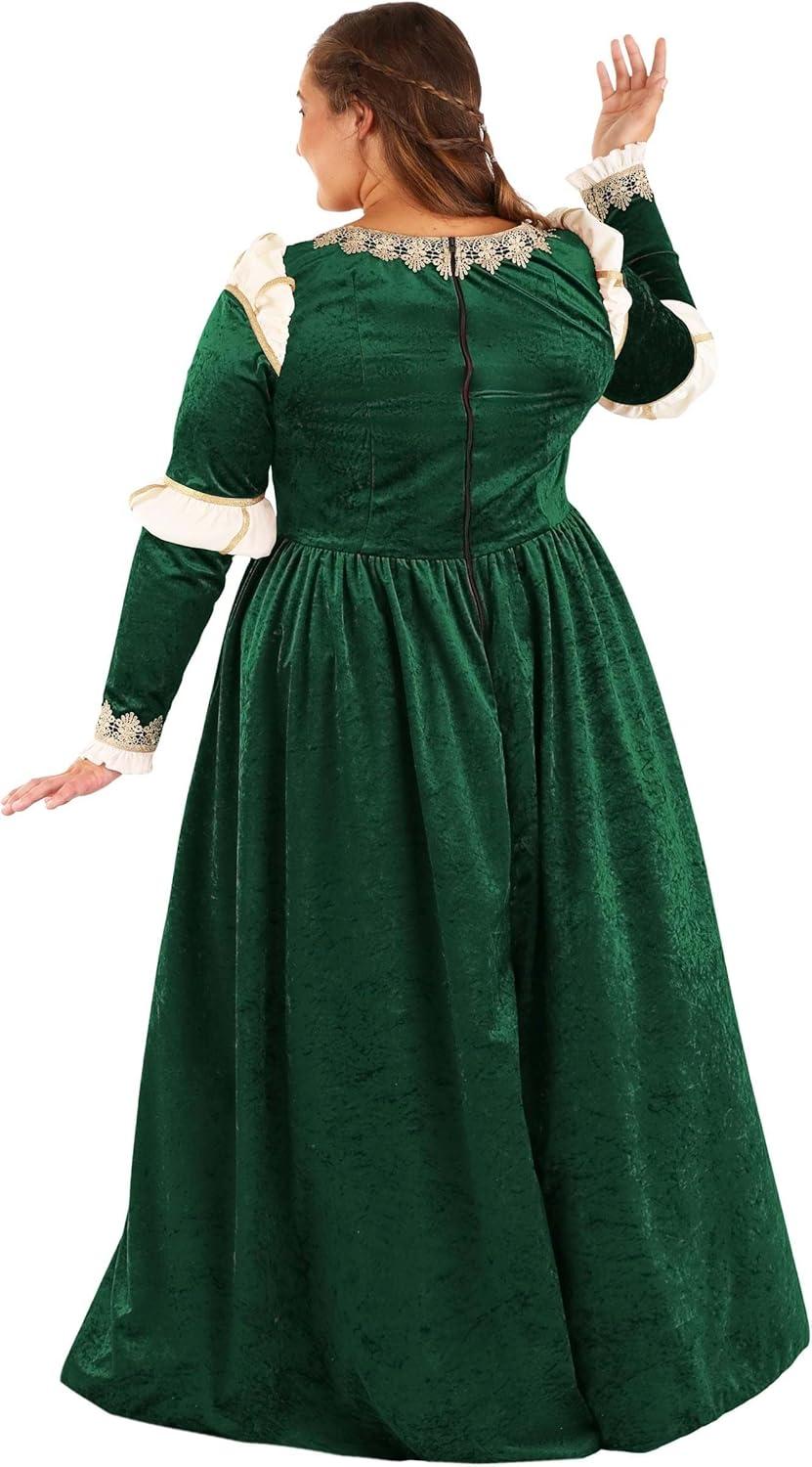 Women’s Plus Size Emerald Maiden Costume | Green Medieval Halloween Dress, Polyester Velvet and Brocade