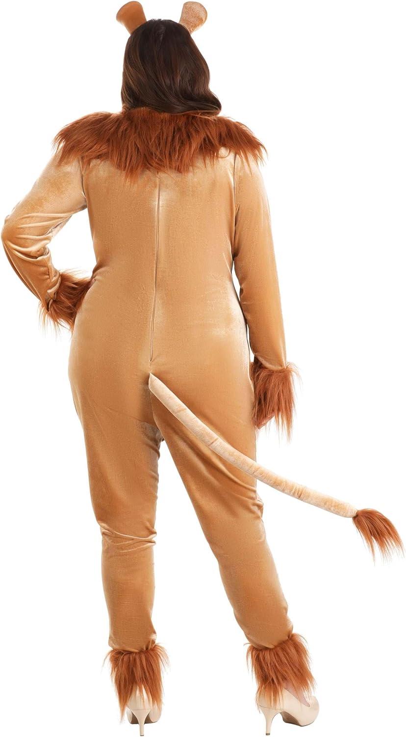Women’s Plus Size Fierce Lion Costume | Safari Predator Animal Jumpsuit with Tail and Headband