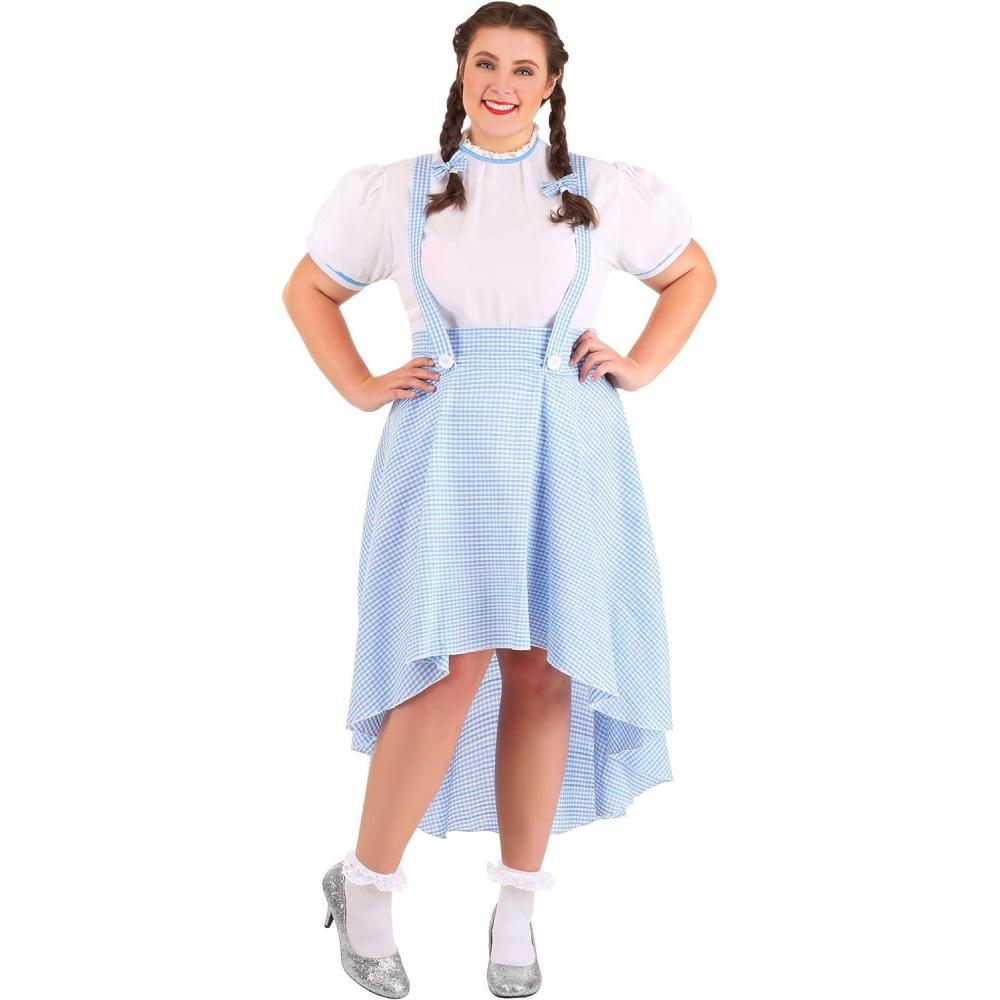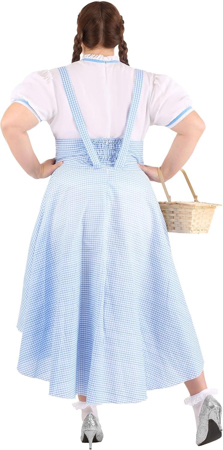 Get dressed for a wondrous adventure with this Plus Size Kansis Girl High Low Costume. This simple, yet cute outfit comes with a white blouse top with light blue accents around the neck and the sleeves. It also comes with a blue and white gingham skirt with a high low style to give you a look that will have you ready to skip down a golden brick road! – Blouse – Pinafore Skirt