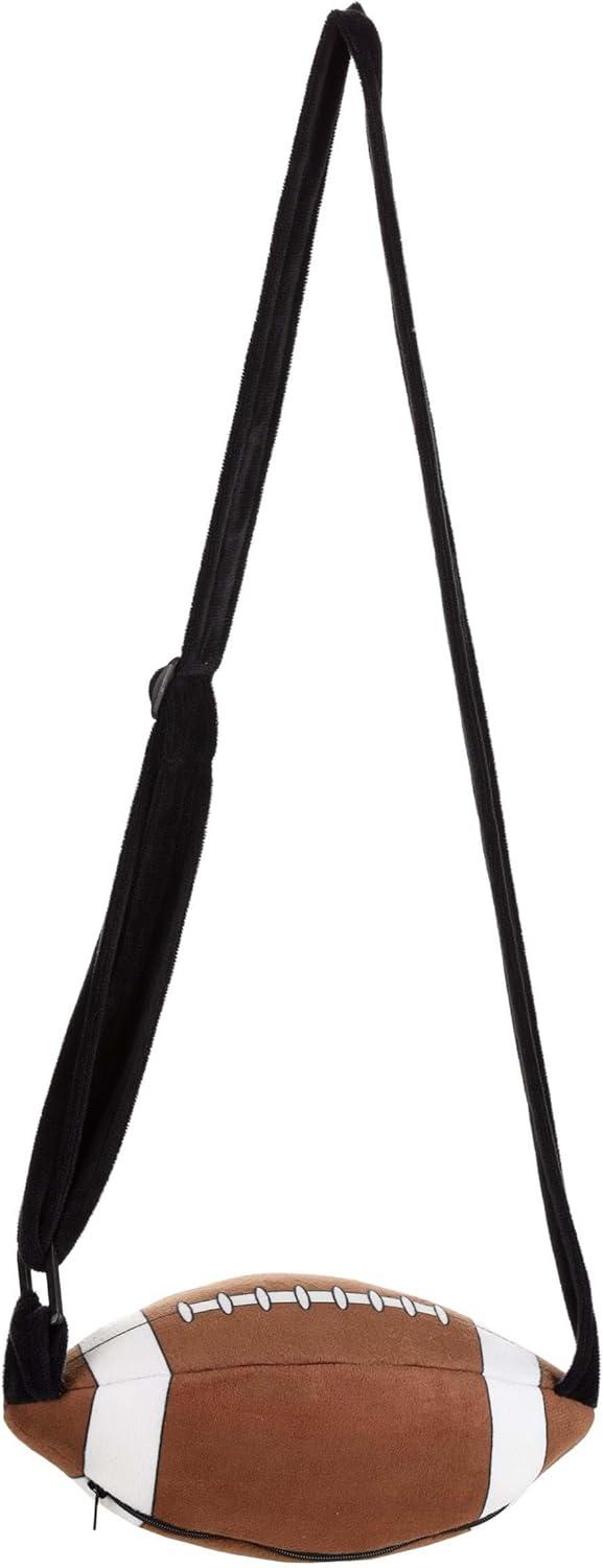 Football costume accessories have never been this stylish; step into the spotlight with this Plush Football Purse in standard brown. This football plush is not only a unique fashion accessory, but it also serves as a practical solution for carrying your essentials. This football crossbody purse is made from 100% polyester velour fabric and filled with fiberfill stuffing, ensuring durability and a plush, comfortable feel. The football bag is not just about looks, it's about quality and longevity, ensuring you get value for your money. This fun shaped purse measures approximately 10 inches long and 5 inches in diameter, providing ample space for your essentials. Despite its compact size, this novelty purse can comfortably hold your phone, wallet, keys, and other small items, making it a practical choice for any sports event or casual outing. Unzip the top of these novelty purses for women to reveal a 4-inch deep compartment, ensuring your belongings are safe and easily accessible. The zipper on these novelty purses adds an extra layer of security, giving you peace of mind as you enjoy your day out. Adjust the strap of these novelty handbags from 26 inches to 52 inches to suit your preference. Whether you prefer to wear it over your shoulder or across your body, the adjustable strap ensures a comfortable fit, making it a must-have accessory for any sports enthusiast. – Purse