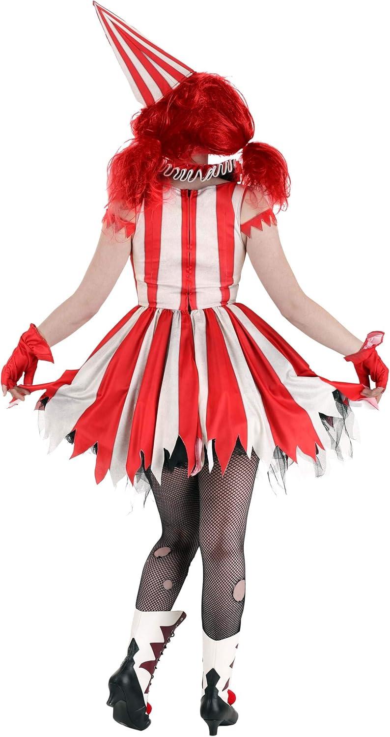 Unleash your inner jester with the provocative clown costume women will love. This Women's Sinister Circus Clown Costume in Large is your ticket to the spotlight. Crafted from 100% polyester, the provocative clown costume for women ensures durability and comfort for all-night wear, making you the center of attention. The scary clown woman costume features a back zipper for ease of wear. Its unique design includes narrow shoulder straps with an off-shoulder side strap, adding a touch of elegance. With a ruched bust and two tulle rosettes on the bodice front, the scary women clown costume enhances its appeal, making it a standout piece in any costume collection. The scary clown costume for women is made from polyester, ensuring not only style but also durability. Designed to withstand wear and tear, the scary clown costume adult woman ensures longevity, allowing you to enjoy it for many events to come. Designed to accommodate a variety of body types, this costume ensures a comfortable fit. It flatters your figure while providing enough room for movement, allowing you to dance, perform, or simply enjoy your event without feeling restricted. In summary, the Women's Sinister Circus Clown Costume in Large is a unique and stylish choice for any event. With its durable material, attention to detail, and comfortable fit, it's a standout choice. Whether you're attending a party or performing on stage, this costume will ensure you make a memorable impression. – Dress – Collar – Hat – Pair of Fingerless Gloves