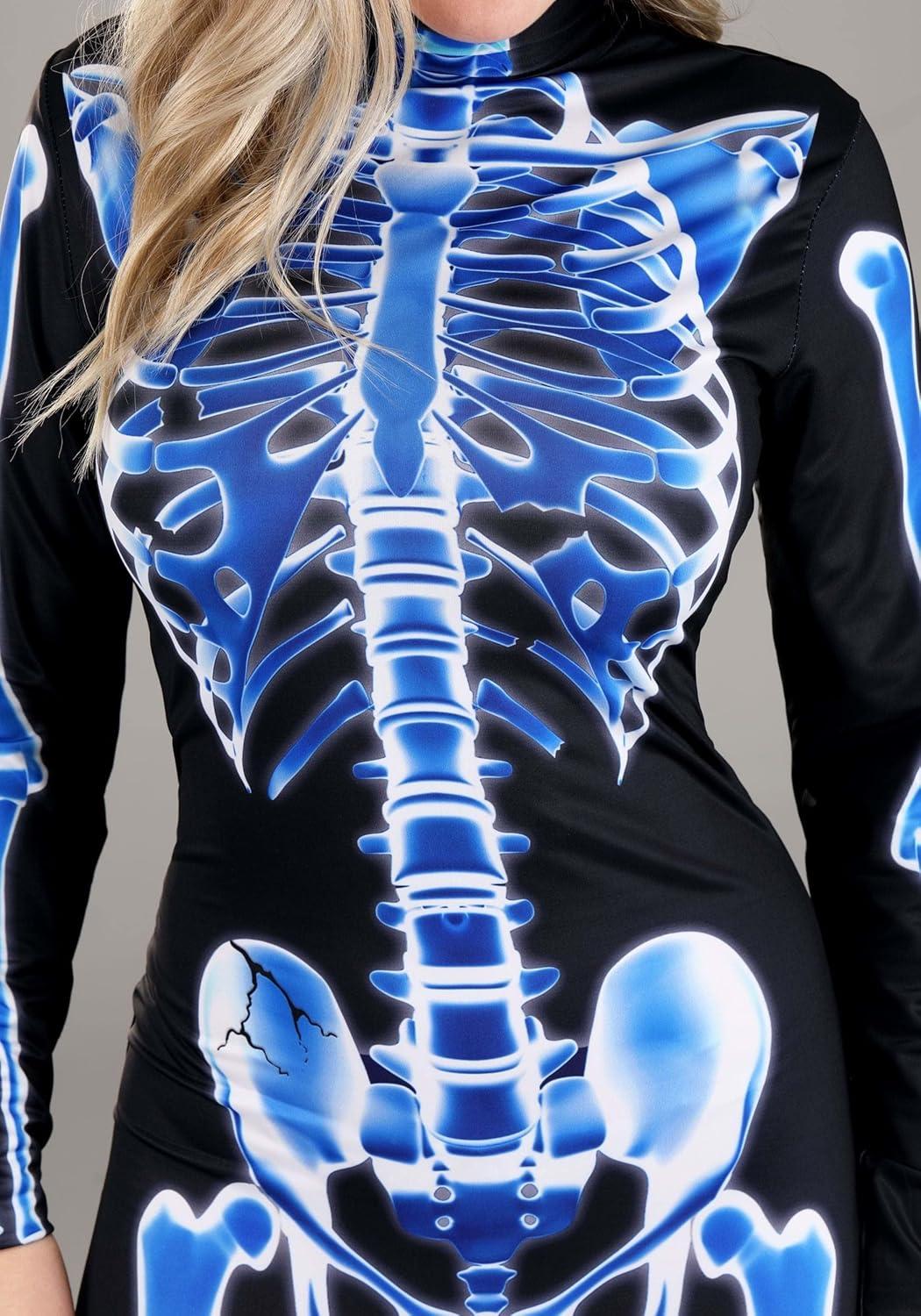 Women’s X-Ray Skeleton Bodysuit Costume – Women’s Skinny Stretch Spandex Skeleton Bodysuit for Halloween Party